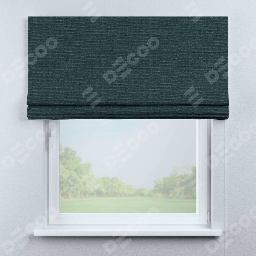 Римская штора производителя «Cortin», используется для проёма, пошита из ткани лён димаут серо-синий, артикул ткани 03238. Имеет универсальный механизм и подходит для монтажа: на потолок, на стену и в нишу.