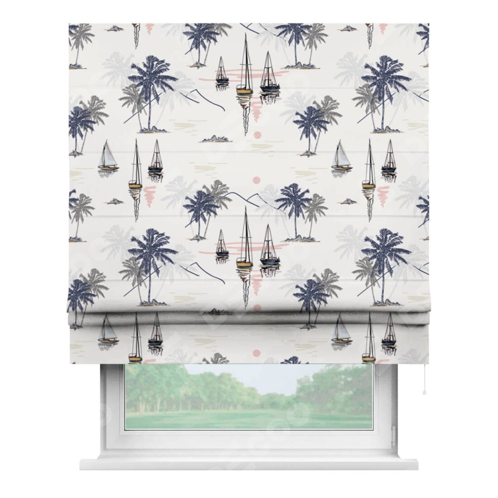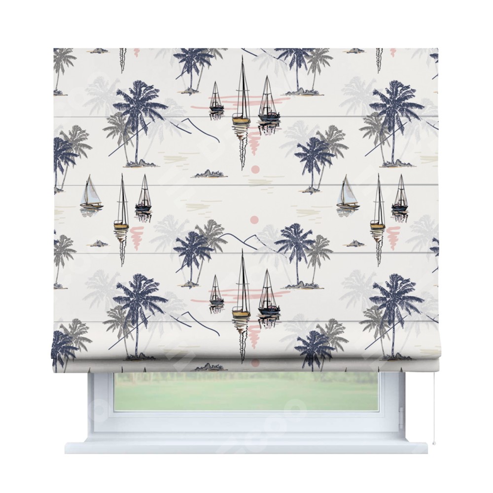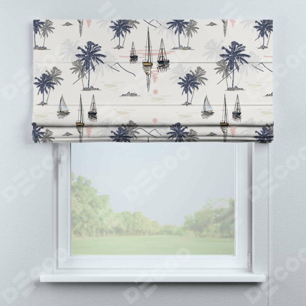 Римская штора производителя «Cortin», используется для проёма, пошита из ткани блэкаут с нанесением сублимационной печати «Морское путешествие». Имеет универсальный механизм и подходит для монтажа: на потолок, на стену и в нишу.
