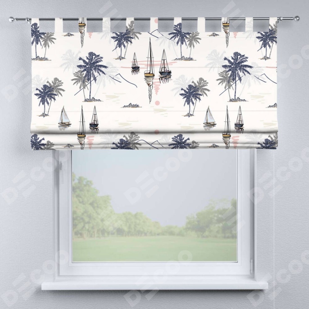 Римская штора производителя «Cortin», используется для проёма, пошита из ткани блэкаут с нанесением сублимационной печати «Морское путешествие». Данная модель пошита на петлях, комплектуется на выбор круглым карнизом и подходит для монтажа на стену. Римская штора на петлях имеет простую систему регулировки высоты, отличительным преимуществом данной модели является простой способ монтажа. Достаточно повесить ее на трубу и штора готова!