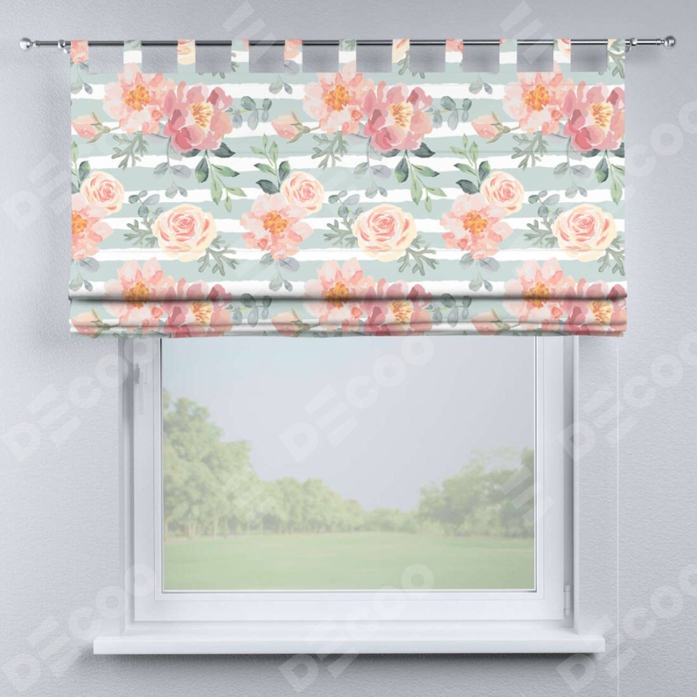 Римская штора производителя «Cortin», используется для проёма, пошита из ткани блэкаут с нанесением сублимационной печати «Розы акварель». Данная модель пошита на петлях, комплектуется на выбор круглым карнизом и подходит для монтажа на стену. Римская штора на петлях имеет простую систему регулировки высоты, отличительным преимуществом данной модели является простой способ монтажа. Достаточно повесить ее на трубу и штора готова!