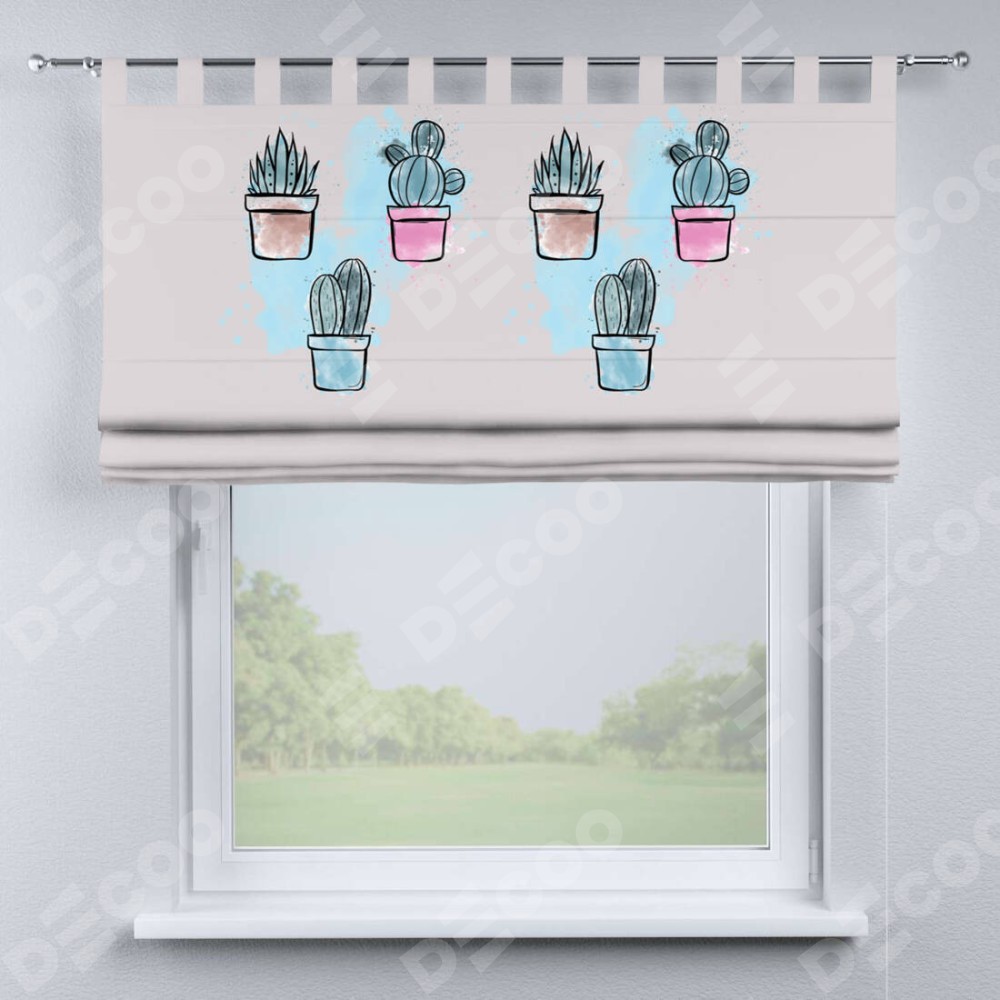 Римская штора производителя «Cortin», используется для проёма, пошита из ткани блэкаут с нанесением сублимационной печати «Кактусовая оранжерея». Данная модель пошита на петлях, комплектуется на выбор круглым карнизом и подходит для монтажа на стену. Римская штора на петлях имеет простую систему регулировки высоты, отличительным преимуществом данной модели является простой способ монтажа. Достаточно повесить ее на трубу и штора готова!
