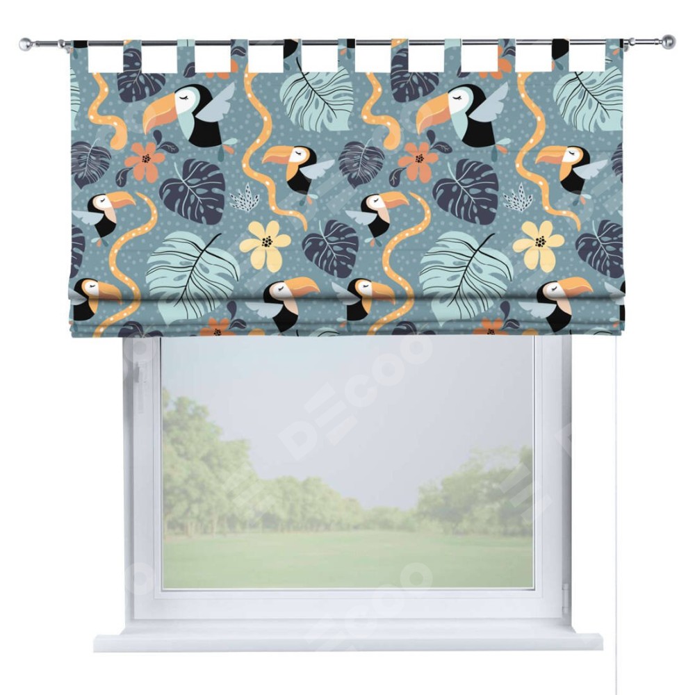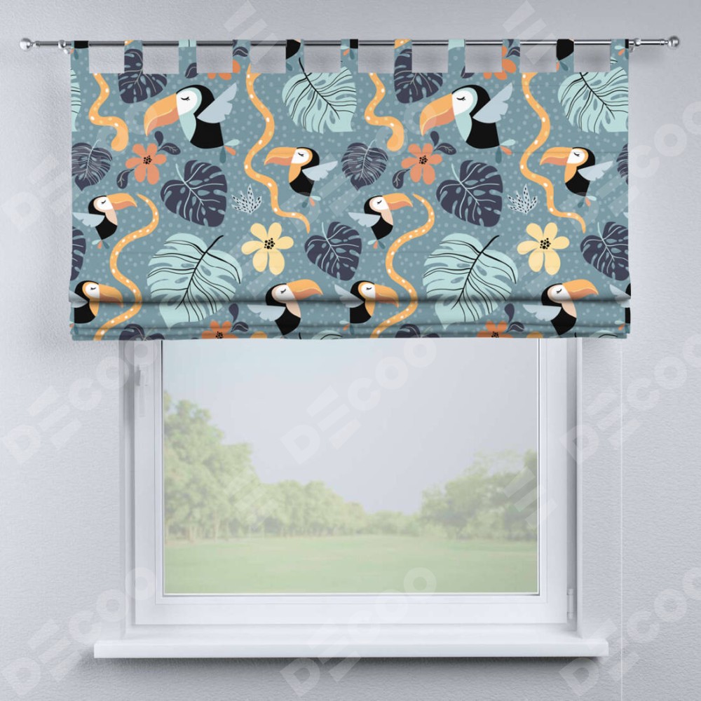 Римская штора производителя «Cortin», используется для проёма, пошита из ткани блэкаут с нанесением сублимационной печати «Экзотические птицы». Данная модель пошита на петлях, комплектуется на выбор круглым карнизом и подходит для монтажа на стену. Римская штора на петлях имеет простую систему регулировки высоты, отличительным преимуществом данной модели является простой способ монтажа. Достаточно повесить ее на трубу и штора готова!