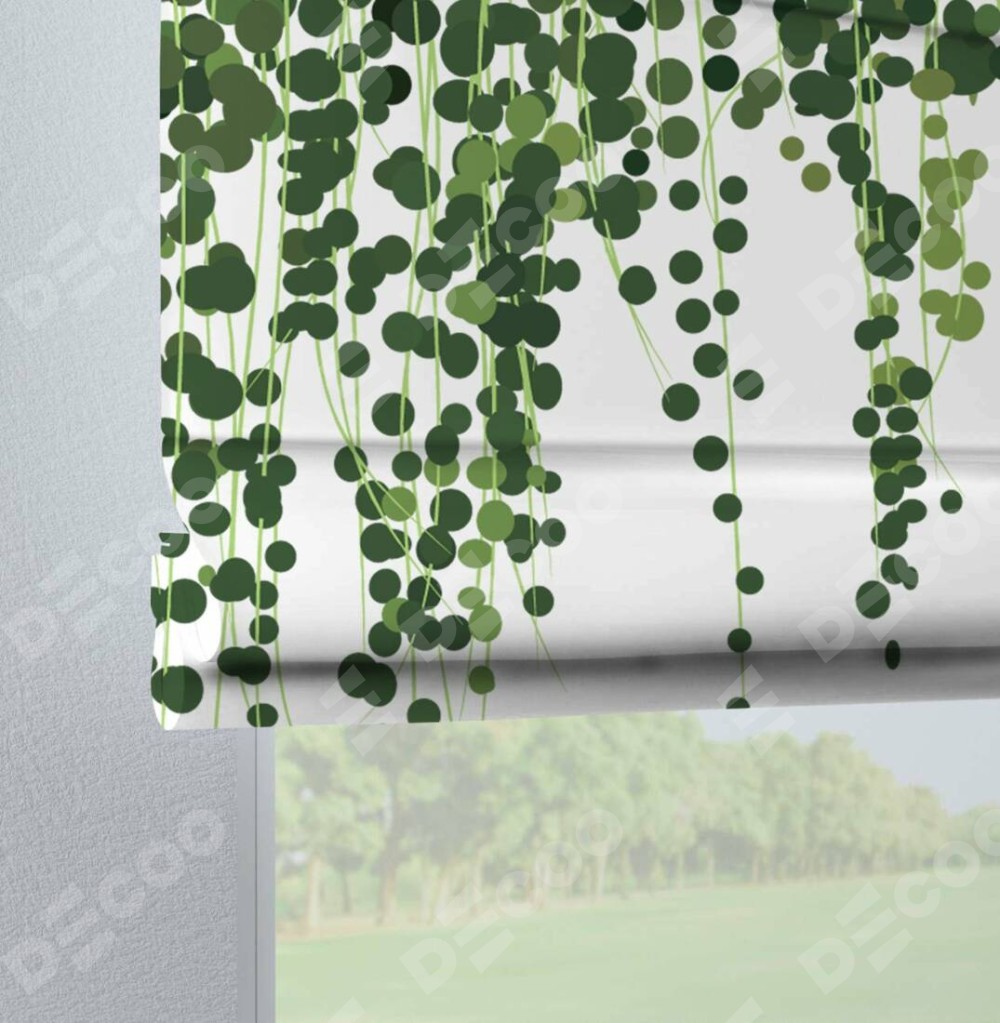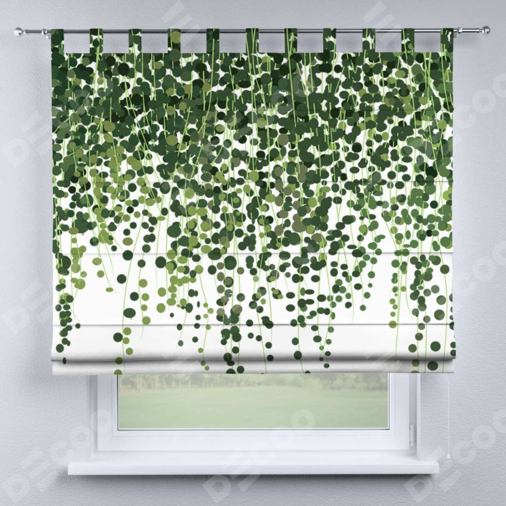 Римская штора производителя «Cortin», используется для проёма, пошита из ткани блэкаут с нанесением сублимационной печати «Зелёный занавес». Данная модель пошита на петлях, комплектуется на выбор круглым карнизом и подходит для монтажа на стену. Римская штора на петлях имеет простую систему регулировки высоты, отличительным преимуществом данной модели является простой способ монтажа. Достаточно повесить ее на трубу и штора готова!