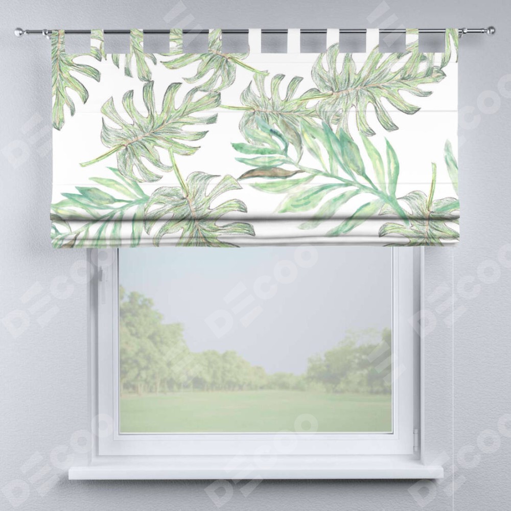 Римская штора производителя «Cortin», используется для проёма, пошита из ткани блэкаут с нанесением сублимационной печати «Листья монстеры». Данная модель пошита на петлях, комплектуется на выбор круглым карнизом и подходит для монтажа на стену. Римская штора на петлях имеет простую систему регулировки высоты, отличительным преимуществом данной модели является простой способ монтажа. Достаточно повесить ее на трубу и штора готова!