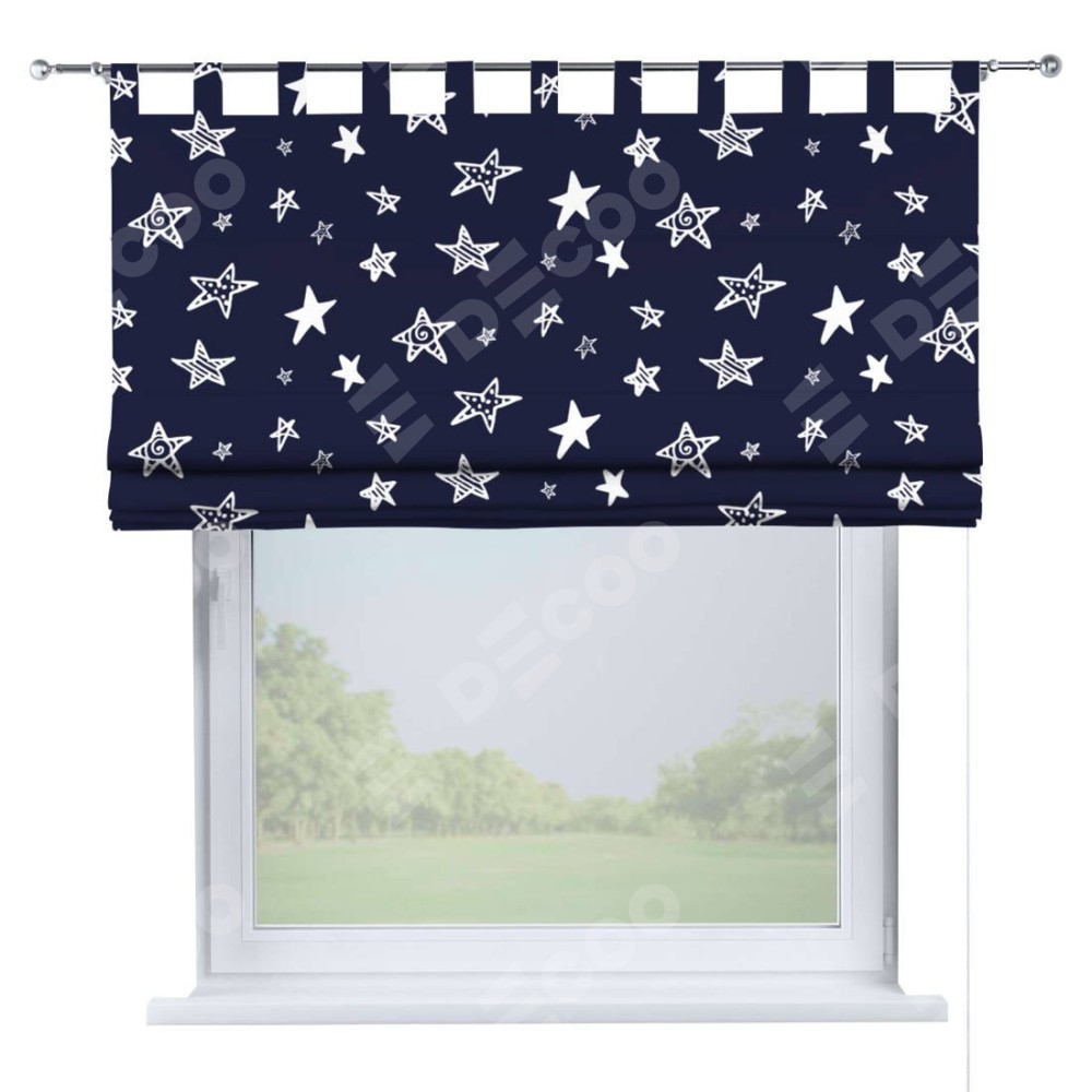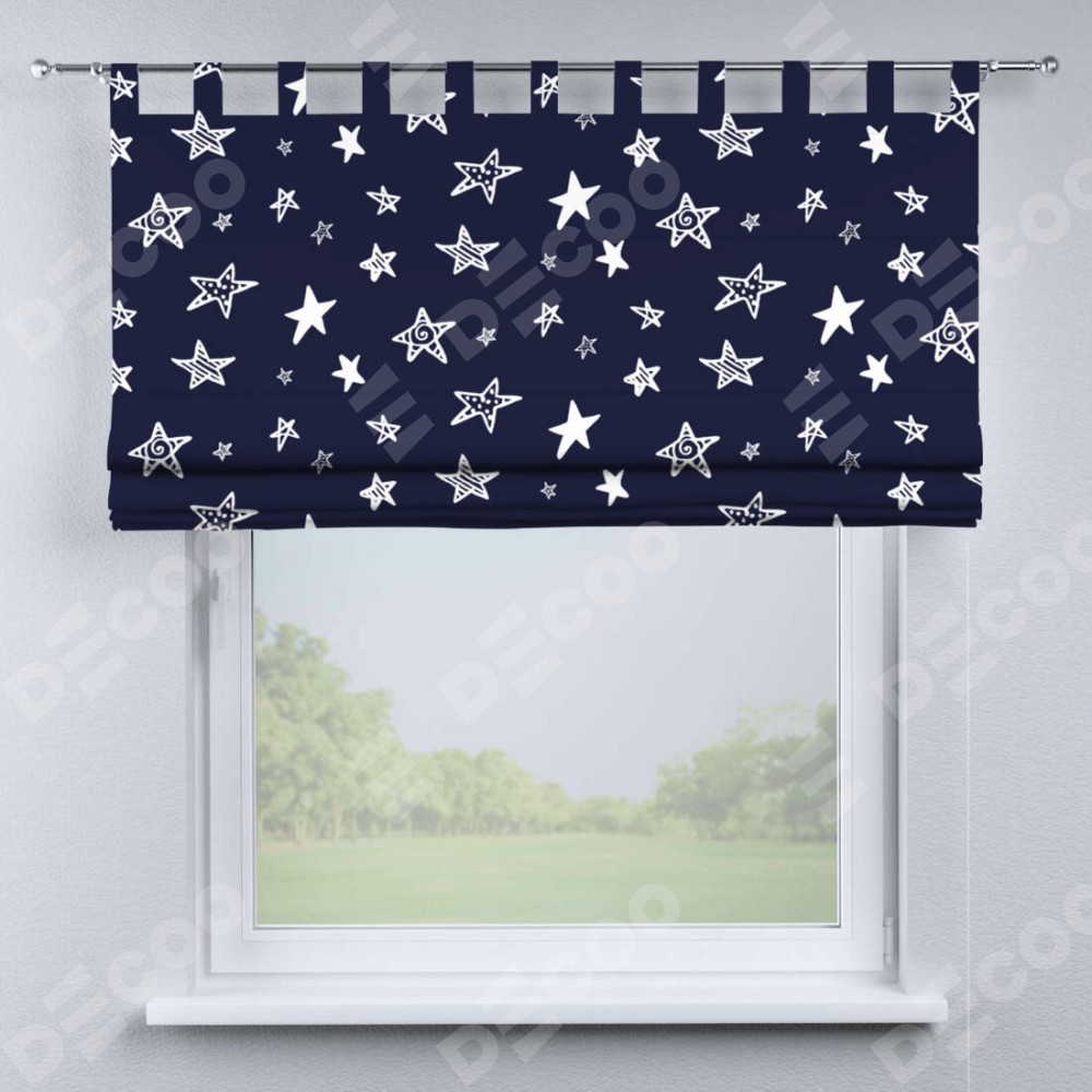 Римская штора производителя «Cortin», используется для проёма, пошита из ткани блэкаут с нанесением сублимационной печати «Ночные звёзды». Данная модель пошита на петлях, комплектуется на выбор круглым карнизом и подходит для монтажа на стену. Римская штора на петлях имеет простую систему регулировки высоты, отличительным преимуществом данной модели является простой способ монтажа. Достаточно повесить ее на трубу и штора готова!