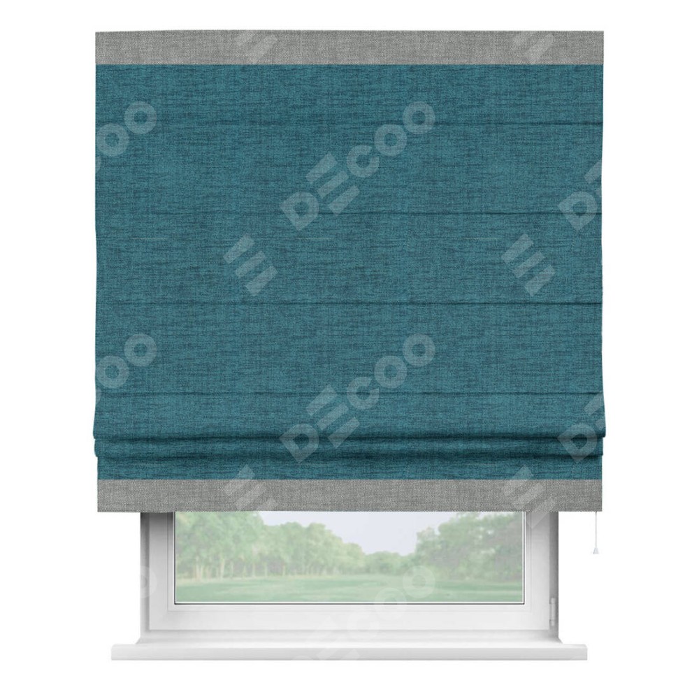 Римская штора «Кортин» с кантом Горизонт, для проема, ткань рогожка димаут, синий