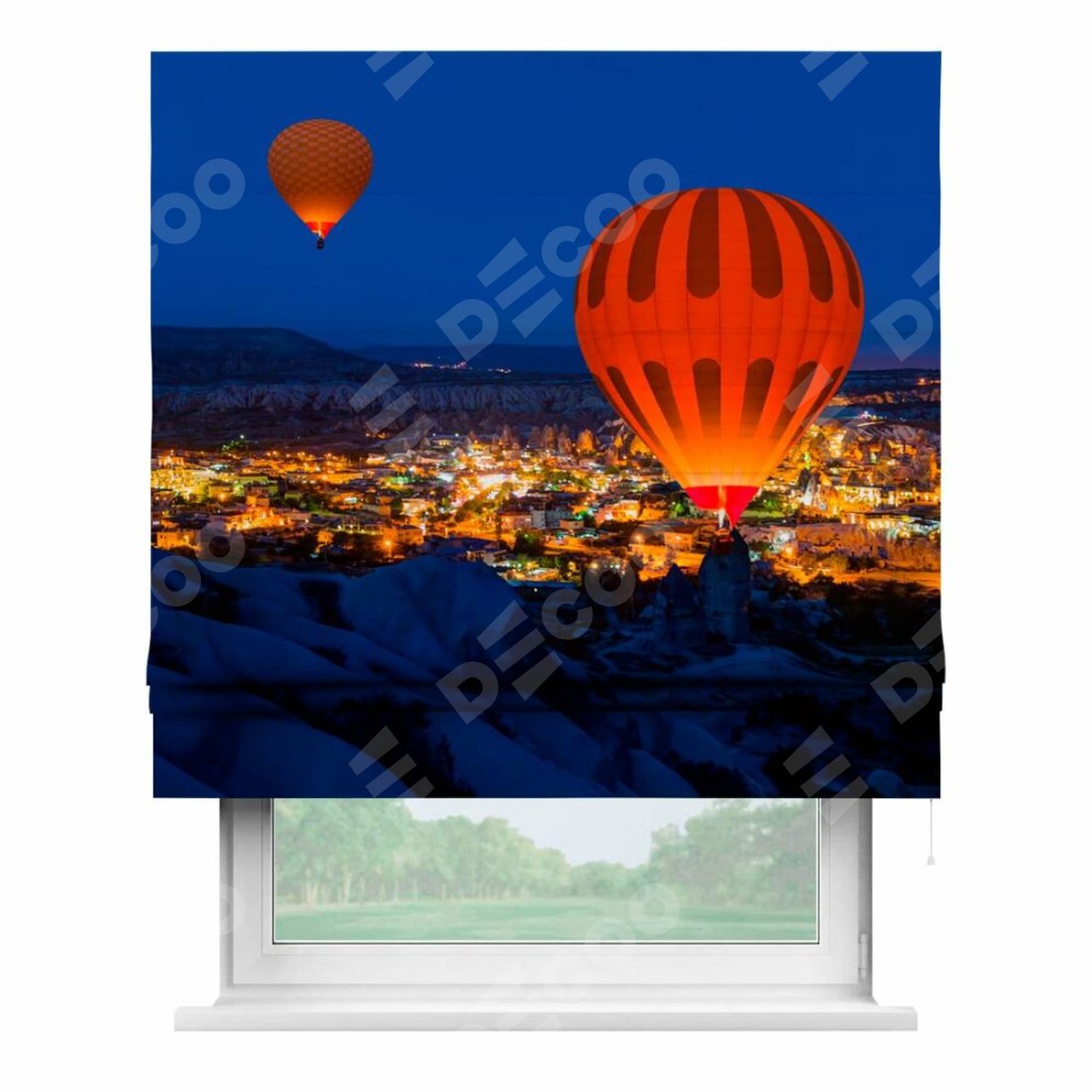 Римская штора «Кортин» для проема «Воздушные шары в небе»