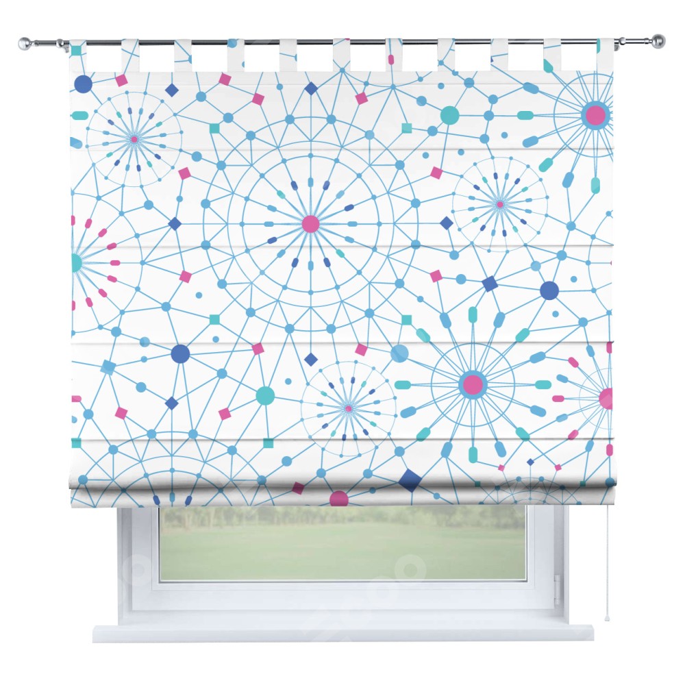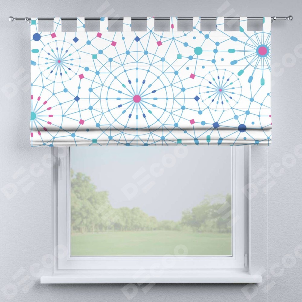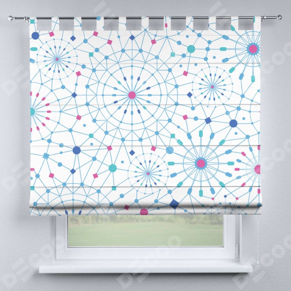 Римская штора производителя «Cortin», используется для проёма, пошита из ткани блэкаут с нанесением сублимационной печати «Круги и линии». Данная модель пошита на петлях, комплектуется на выбор круглым карнизом и подходит для монтажа на стену. Римская штора на петлях имеет простую систему регулировки высоты, отличительным преимуществом данной модели является простой способ монтажа. Достаточно повесить ее на трубу и штора готова!
