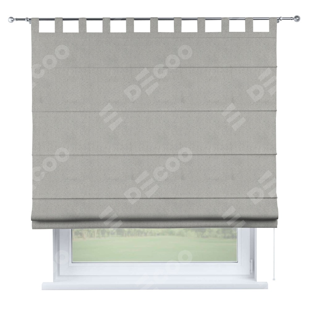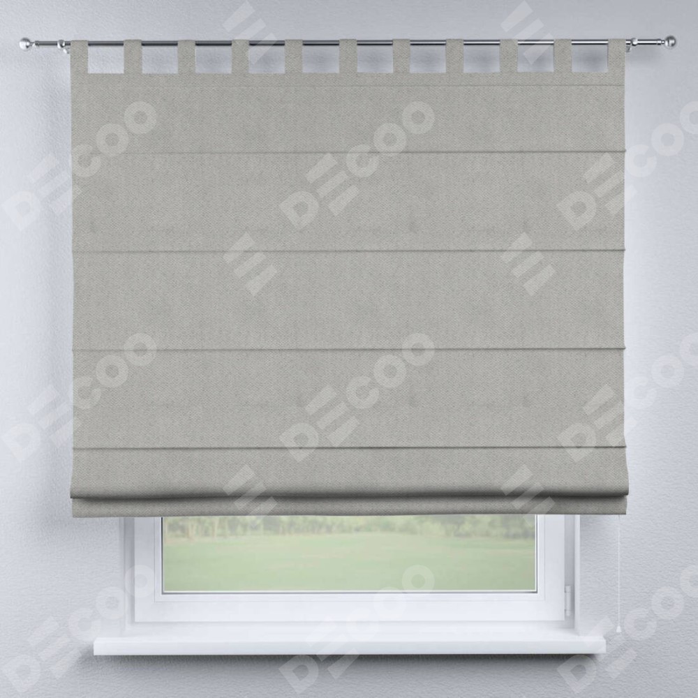Римская штора производителя «Cortin», используется для проёма, пошита из ткани блэкаут с блеском тёмно-серый, артикул ткани 34634. Изнаночная сторона материала черного цвета, что обеспечивает необходимую светонепроницаемость. Данная модель пошита на петлях, комплектуется на выбор круглым карнизом и подходит для монтажа на стену. Римская штора на петлях имеет простую систему регулировки высоты, отличительным преимуществом данной модели является простой способ монтажа. Достаточно повесить ее на трубу и штора готова!