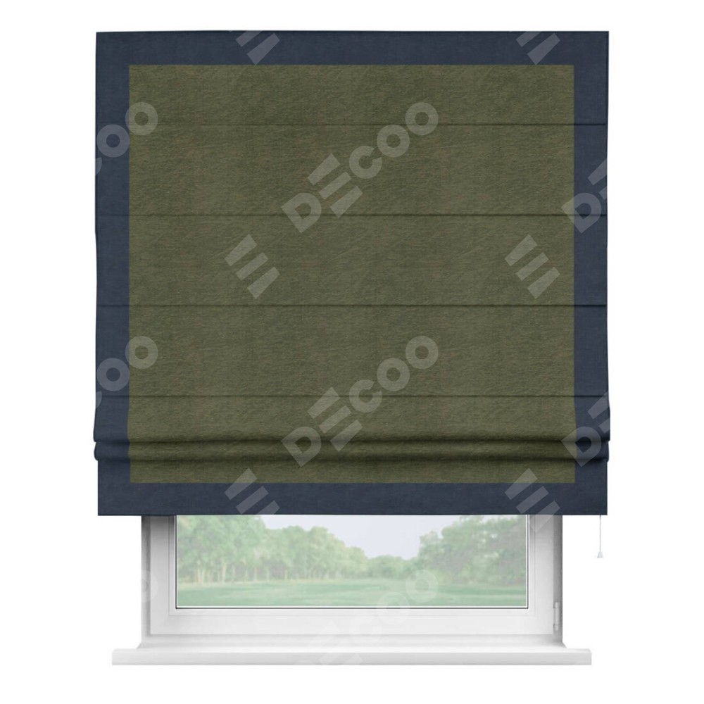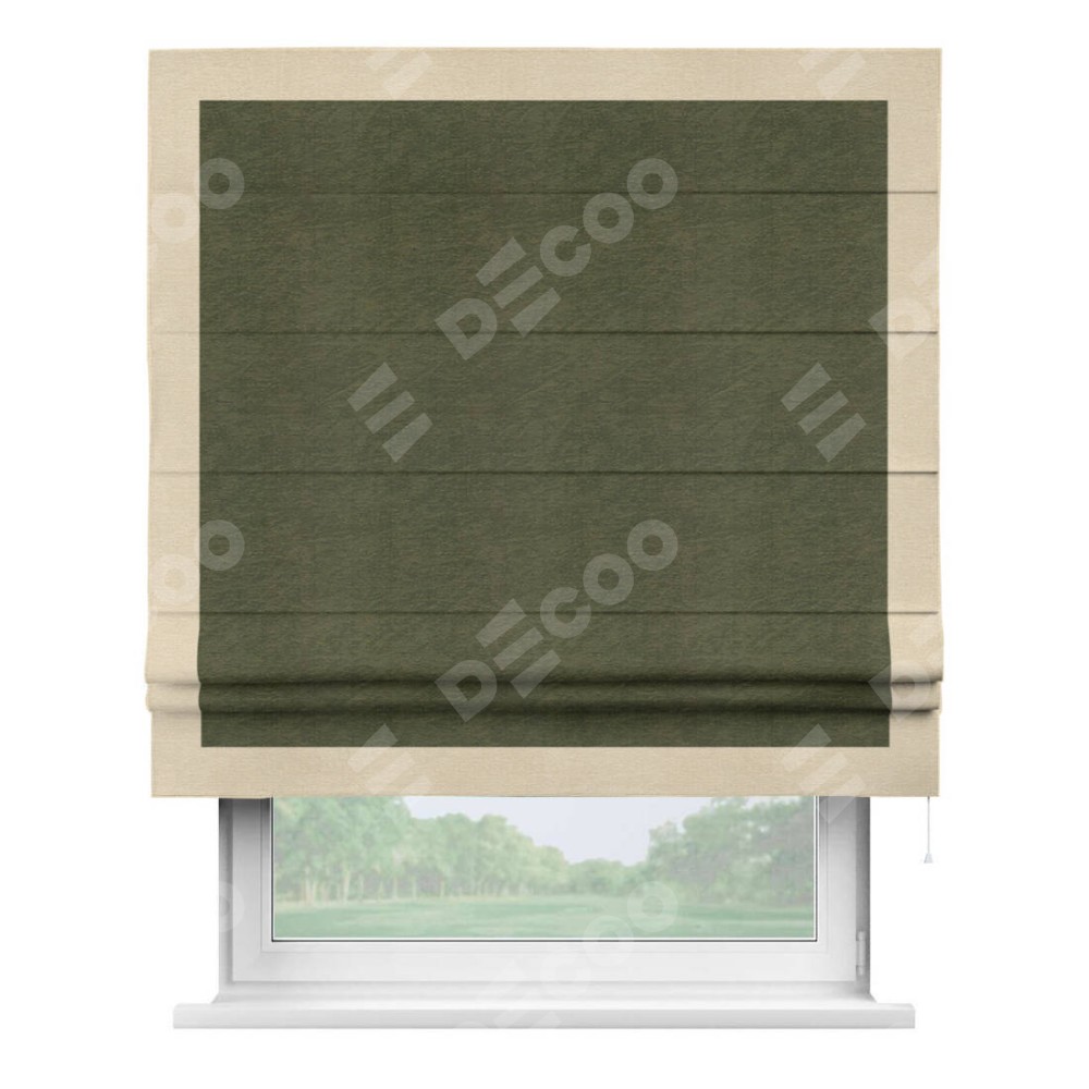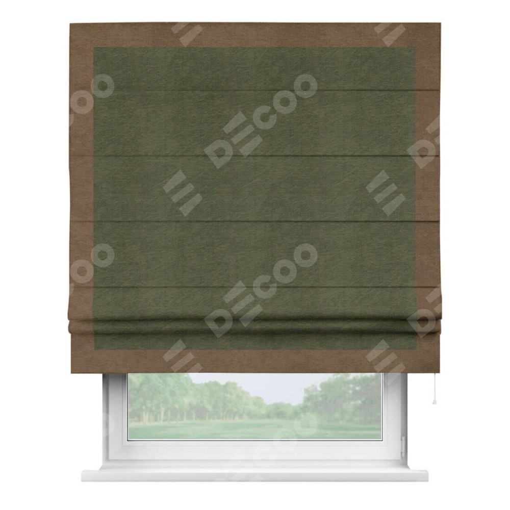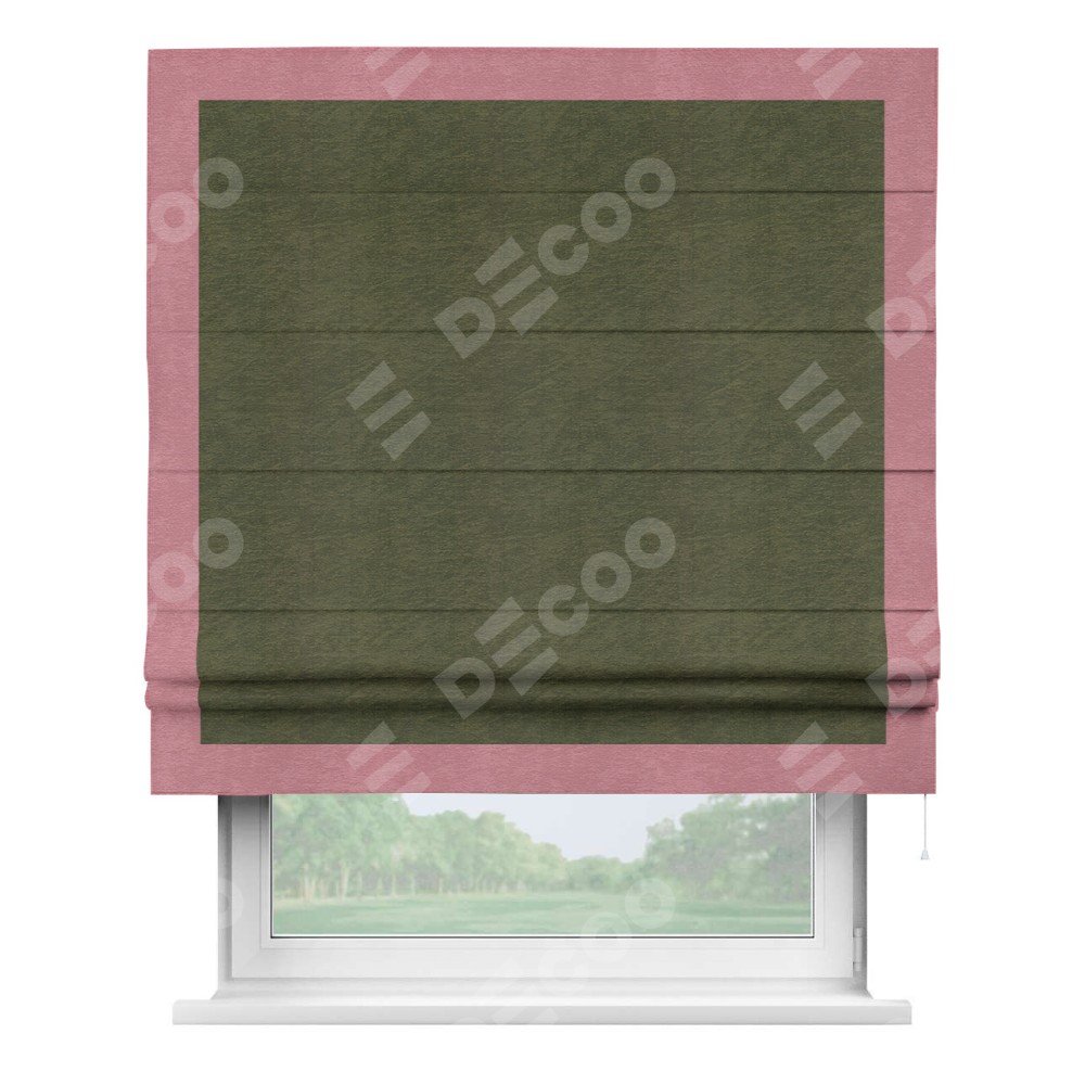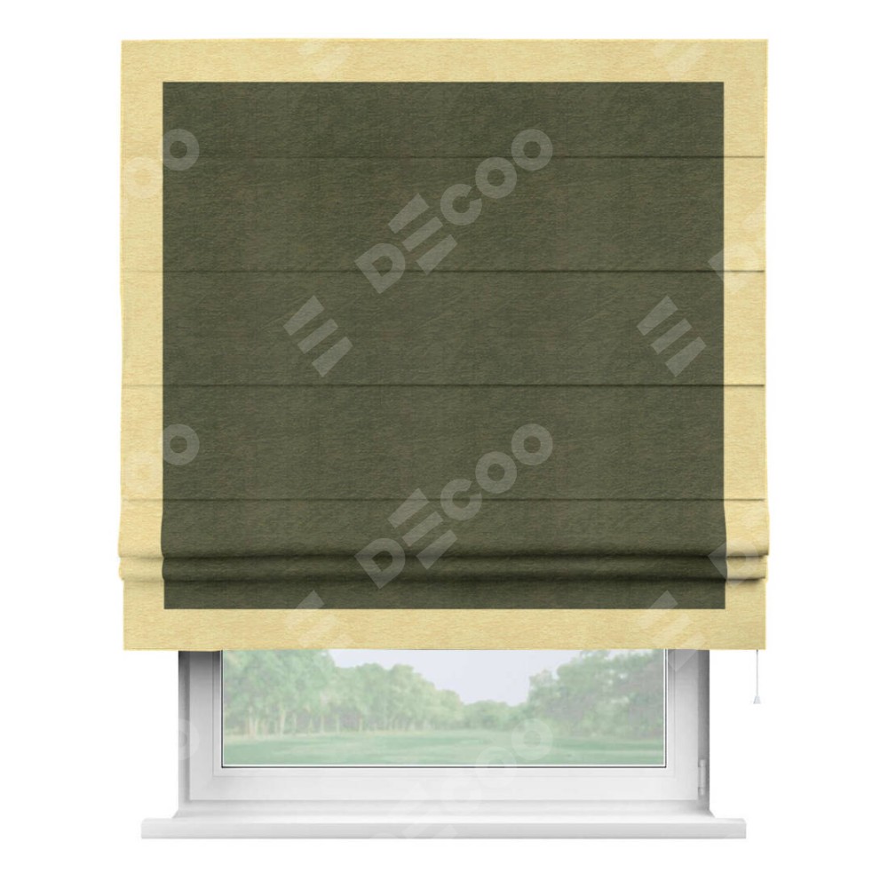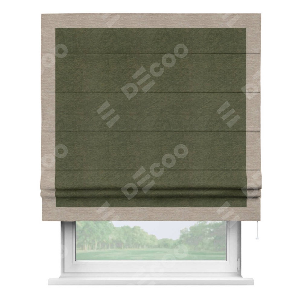 Римская штора «Кортин» с кантом Чесс, для проема, ткань софт однотонный зелёный