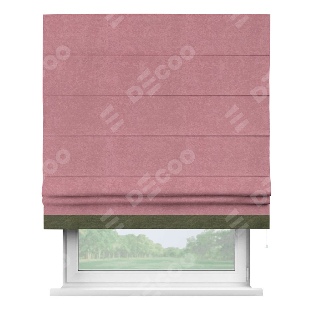 Римская штора производителя «Cortin», используется для проёма, пошита из ткани софт однотонный розовый, артикул 42926. Отделка шторы кантом «Джестер», ткань для канта используется из софта разной расцветки на выбор. Имеет универсальный механизм и подходит для монтажа: на потолок, на стену и в нишу.
