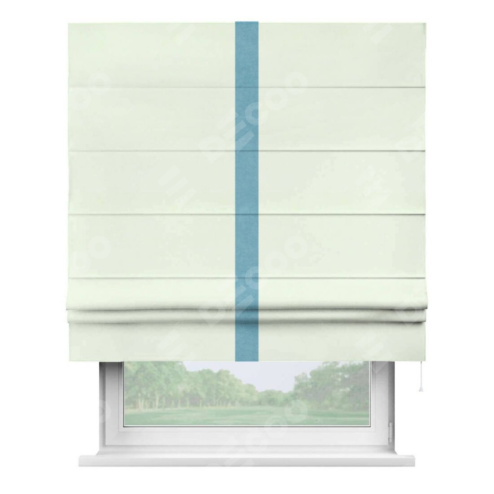 Римская штора производителя «Cortin», используется для проёма, пошита из ткани вельвет кремовый, артикул ткани 85524. Отделка шторы кантом «Хайвей», ткань для канта используется из вельвета разной расцветки на выбор. Имеет универсальный механизм и подходит для монтажа: на потолок, на стену и в нишу.