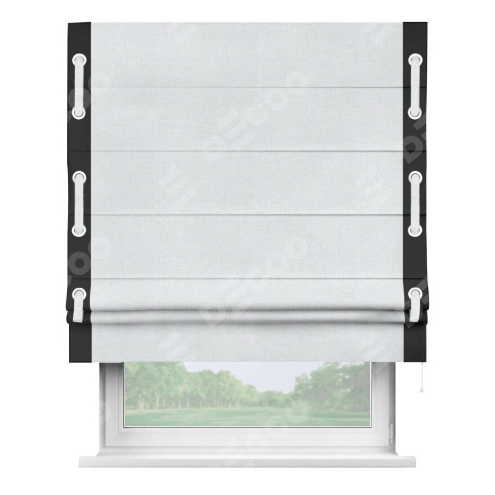 Римская штора «Кортин» с кантом Стрим Дуо (люверсы с пояском), для проема, ткань блэкаут однотонный дымчато-белый