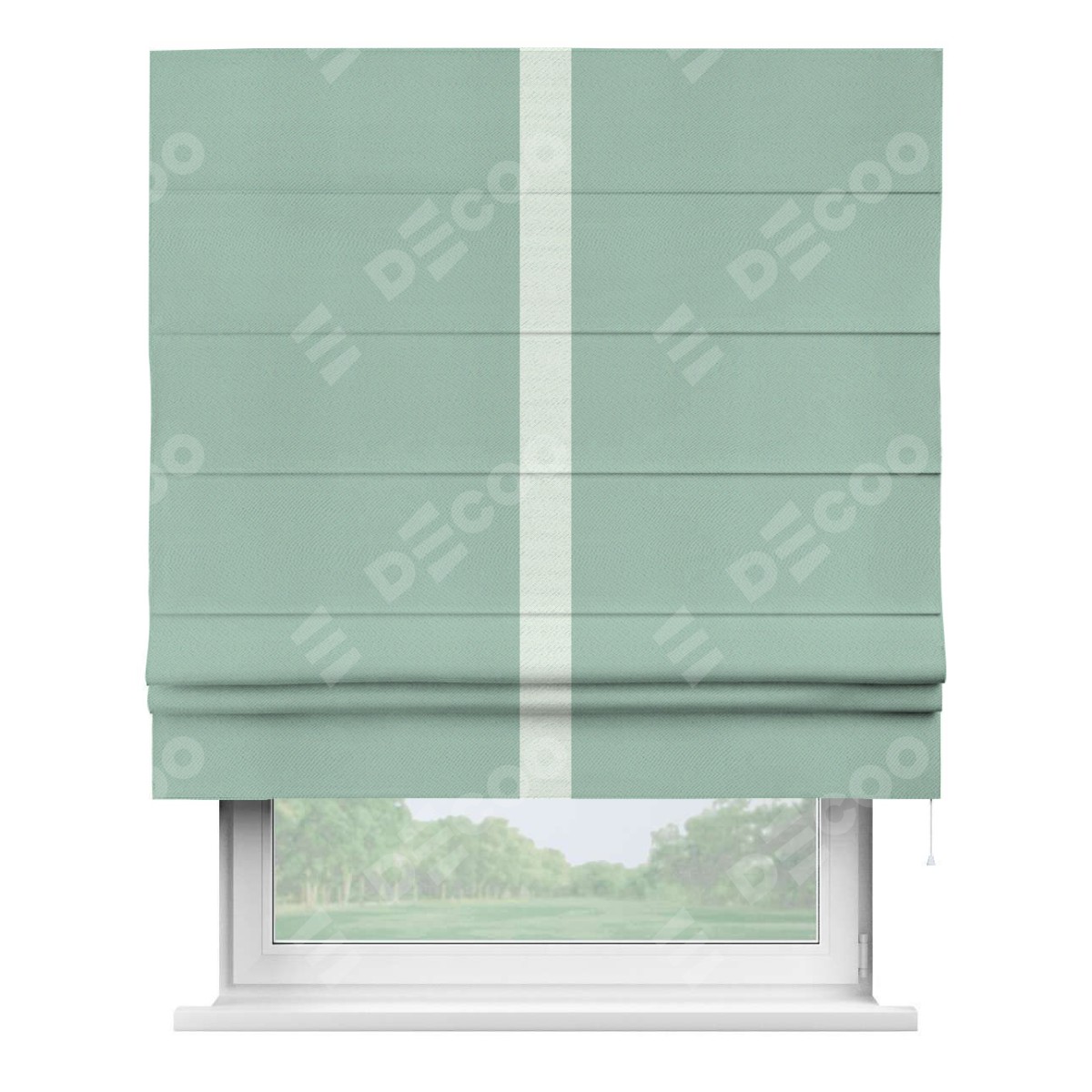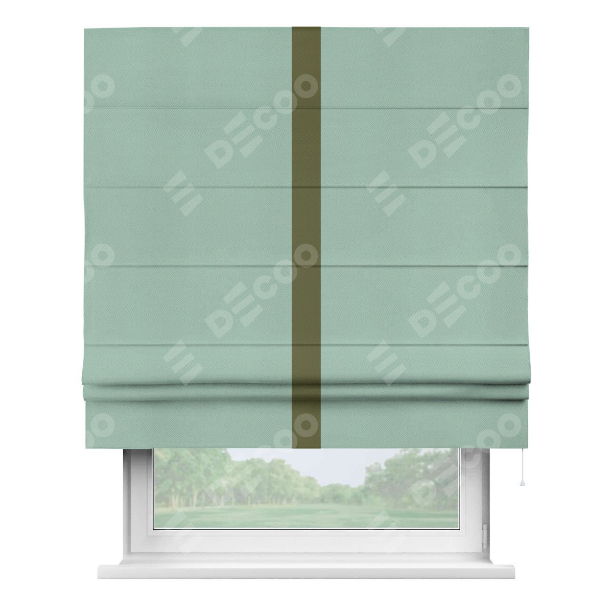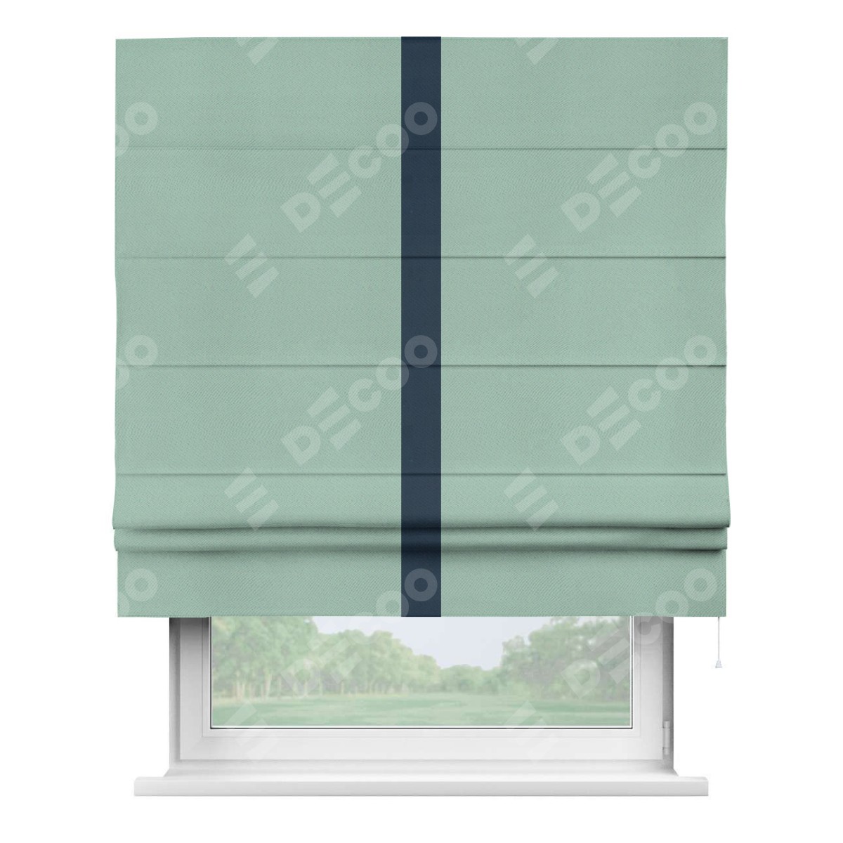 Римская штора производителя «Cortin», используется для проёма, пошита из ткани блэкаут однотонный ментоловый, артикул ткани 29584. Отделка шторы кантом «Хайвей», ткань для канта используется из блэкаута однотонного разной расцветки на выбор. Имеет универсальный механизм и подходит для монтажа: на потолок, на стену и в нишу.