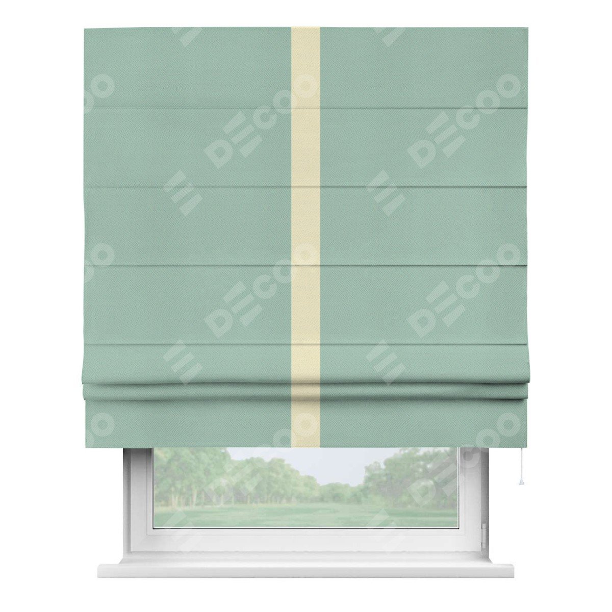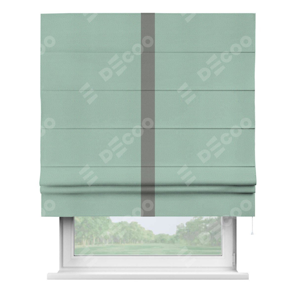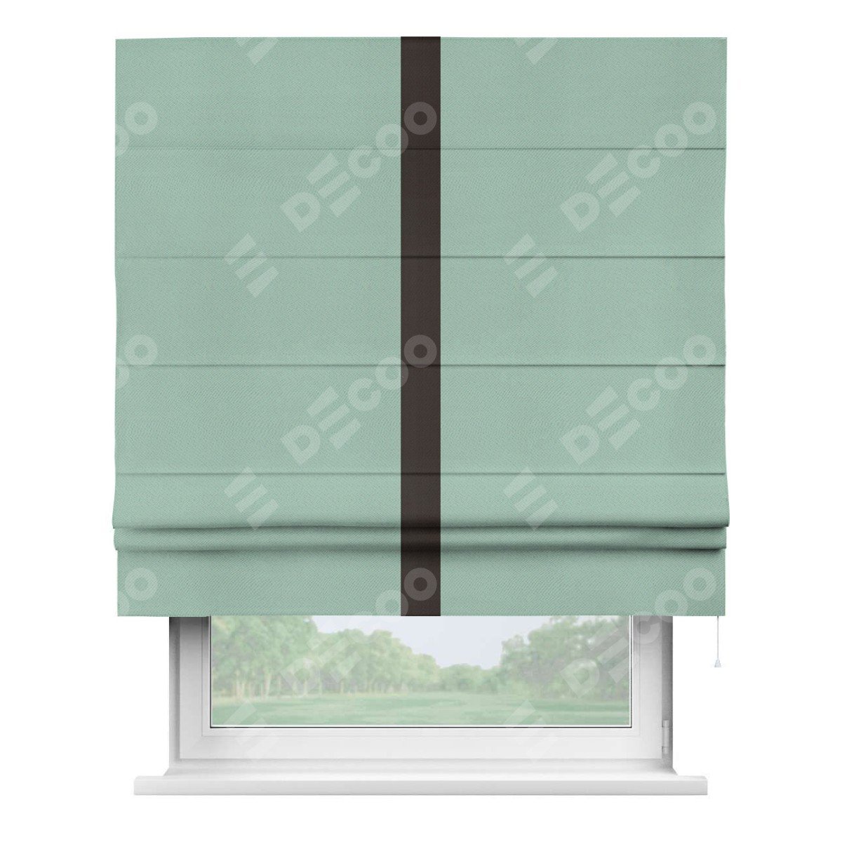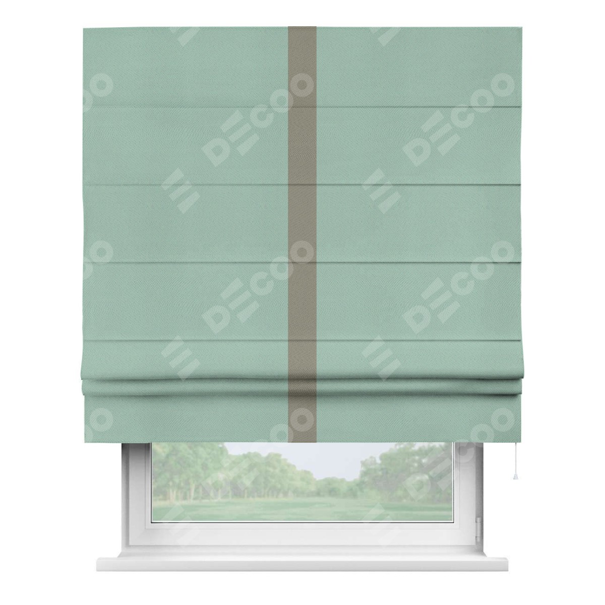 Римская штора производителя «Cortin», используется для проёма, пошита из ткани блэкаут однотонный ментоловый, артикул ткани 29584. Отделка шторы кантом «Хайвей», ткань для канта используется из блэкаута однотонного разной расцветки на выбор. Имеет универсальный механизм и подходит для монтажа: на потолок, на стену и в нишу.
