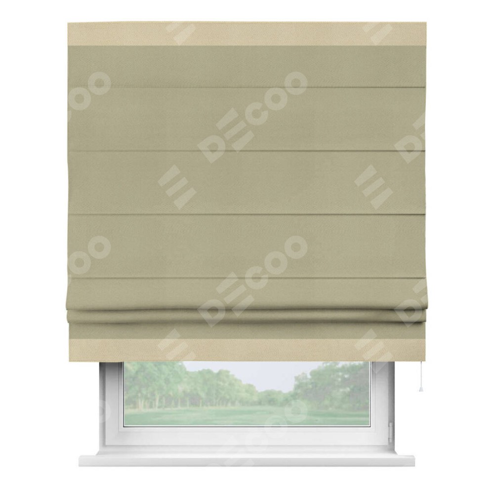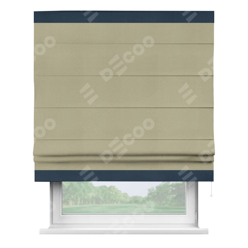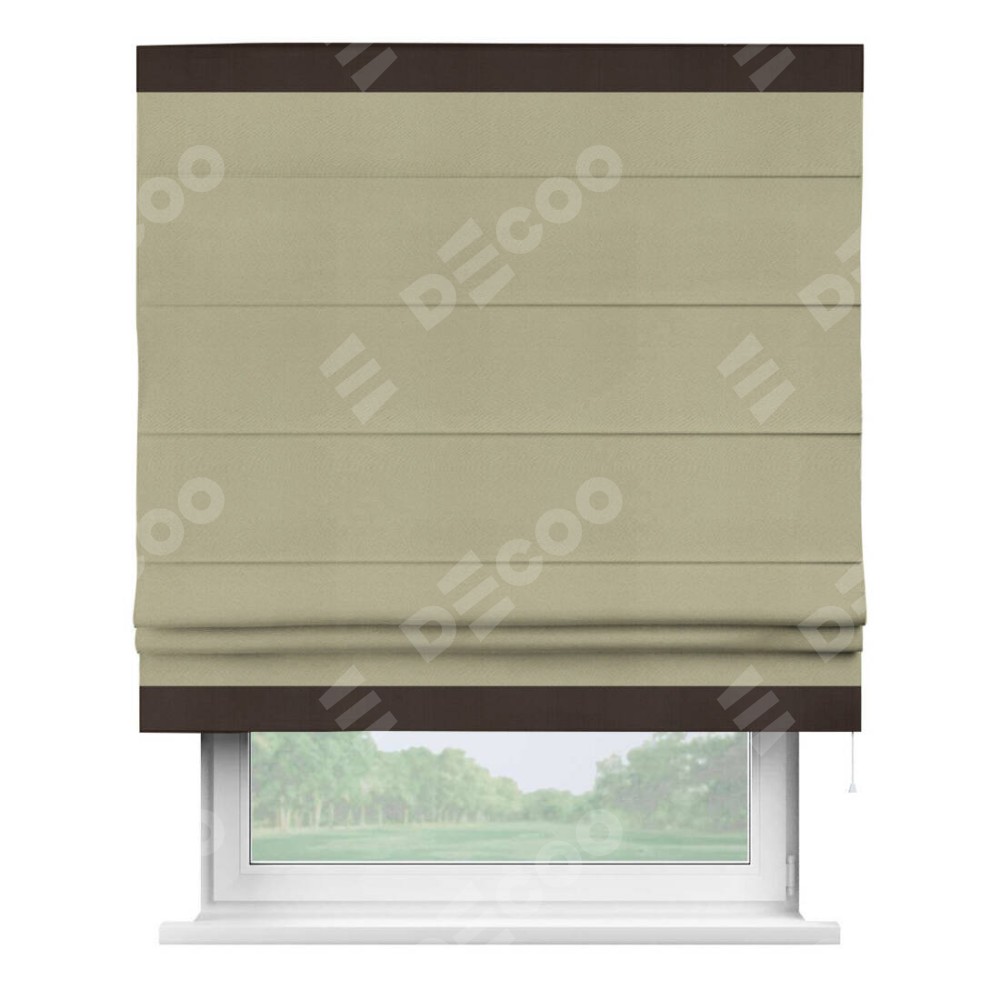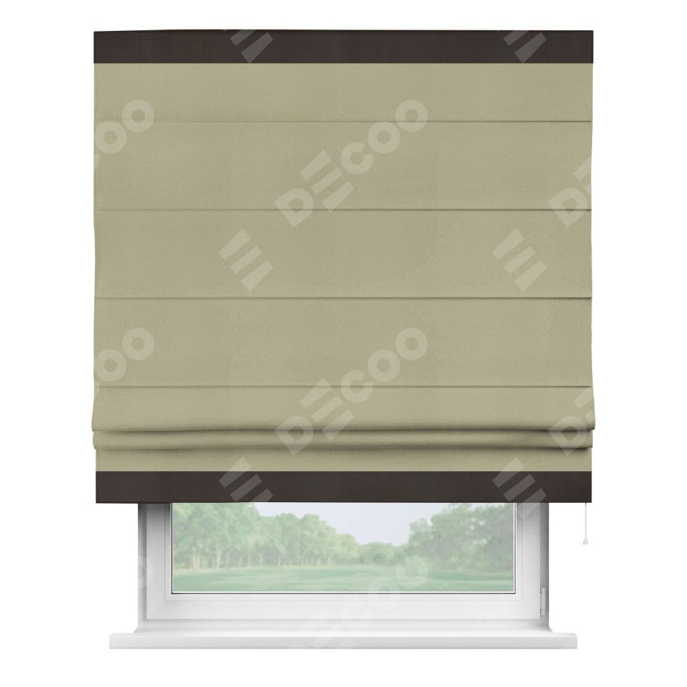 Римская штора производителя «Cortin», используется для проёма, пошита из ткани блэкаут однотонный милано капучино, артикул ткани 06. Отделка шторы кантом «Горизонт», ткань для канта используется из блэкаута однотонного разной расцветки на выбор. Имеет универсальный механизм и подходит для монтажа: на потолок, на стену и в нишу.