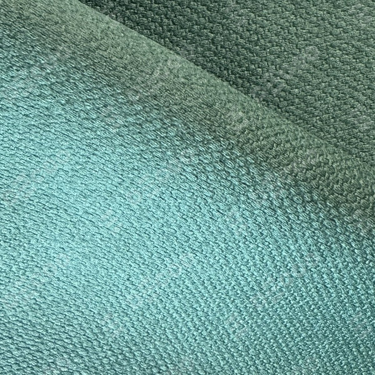 Римская штора кассетного типа, производителя «Cortin», устанавливается только на пластиковые окна и прилегает к стеклопакету, пошита из ткани из ткани блэкаут тиснение с блеском изумрудный, артикул 34628. Изнаночная сторона материала черного цвета, что обеспечивает необходимую светонепроницаемость.