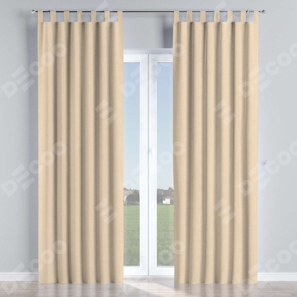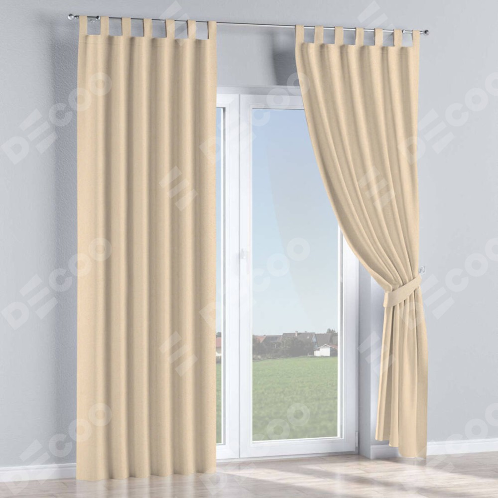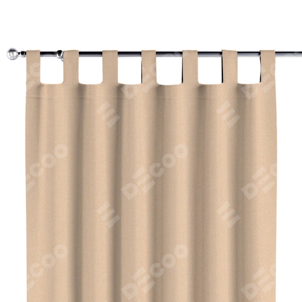 Комплект прямых штор, от производителя «Cortin», пошиты из ткани блэкаут с блеском бежевый, артикул ткани 34627. Обратная сторона основного материала черного цвета, что обеспечивает необходимую светонепроницаемость. Данная модель пошита на петлях, комплектуется на выбор круглым карнизом и подходит для монтажа на стену или потолок. Прямые шторы на петлях шьются по стандарту с коэффициентом 1/2 (на 100 см. ширины проёма 200 см. ширины ткани), отличительным преимуществом данной модели является простой способ монтажа. Достаточно повесить ее на трубу и штора готова!