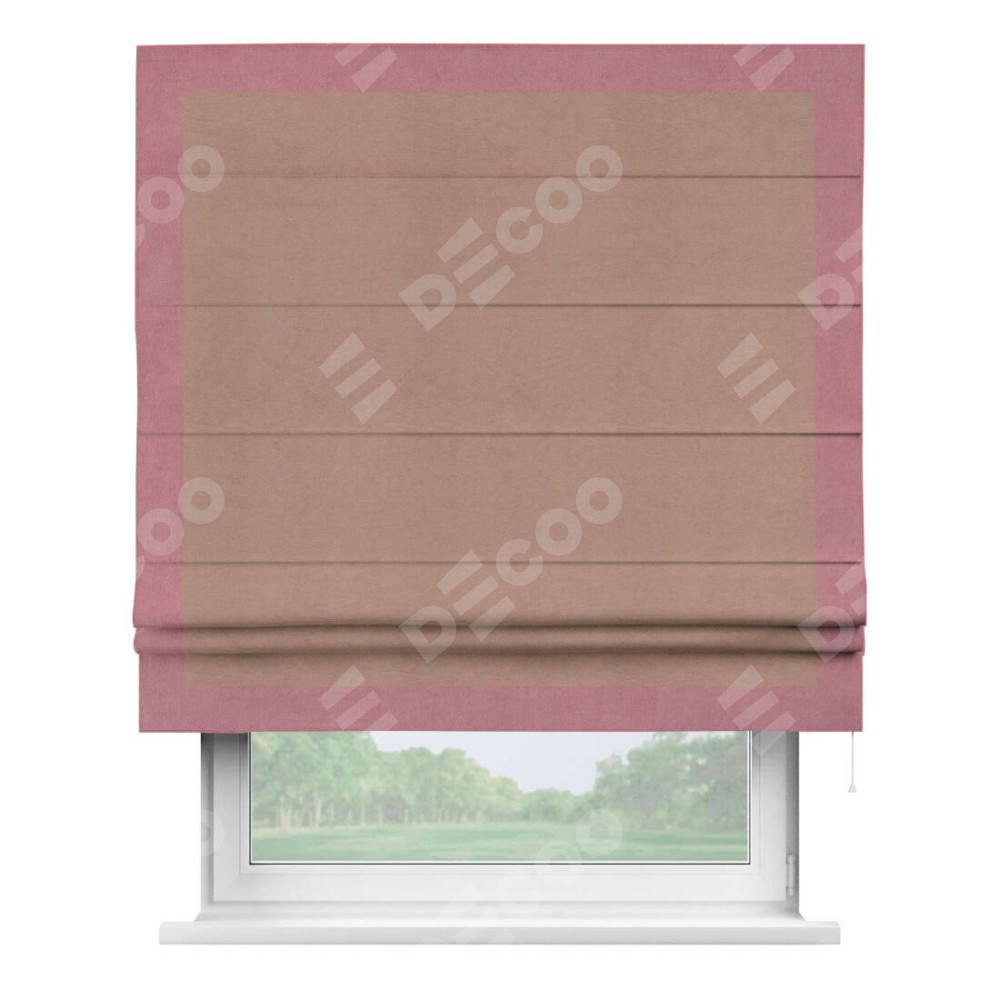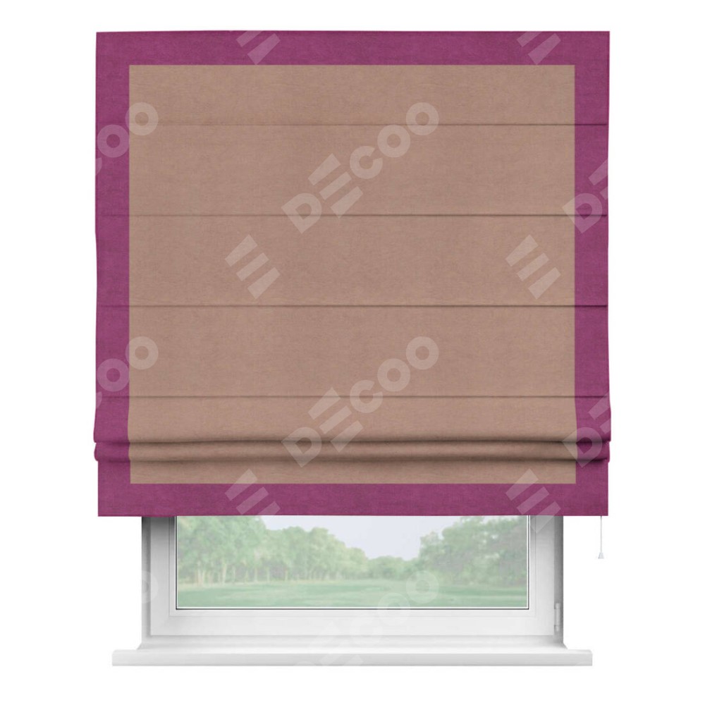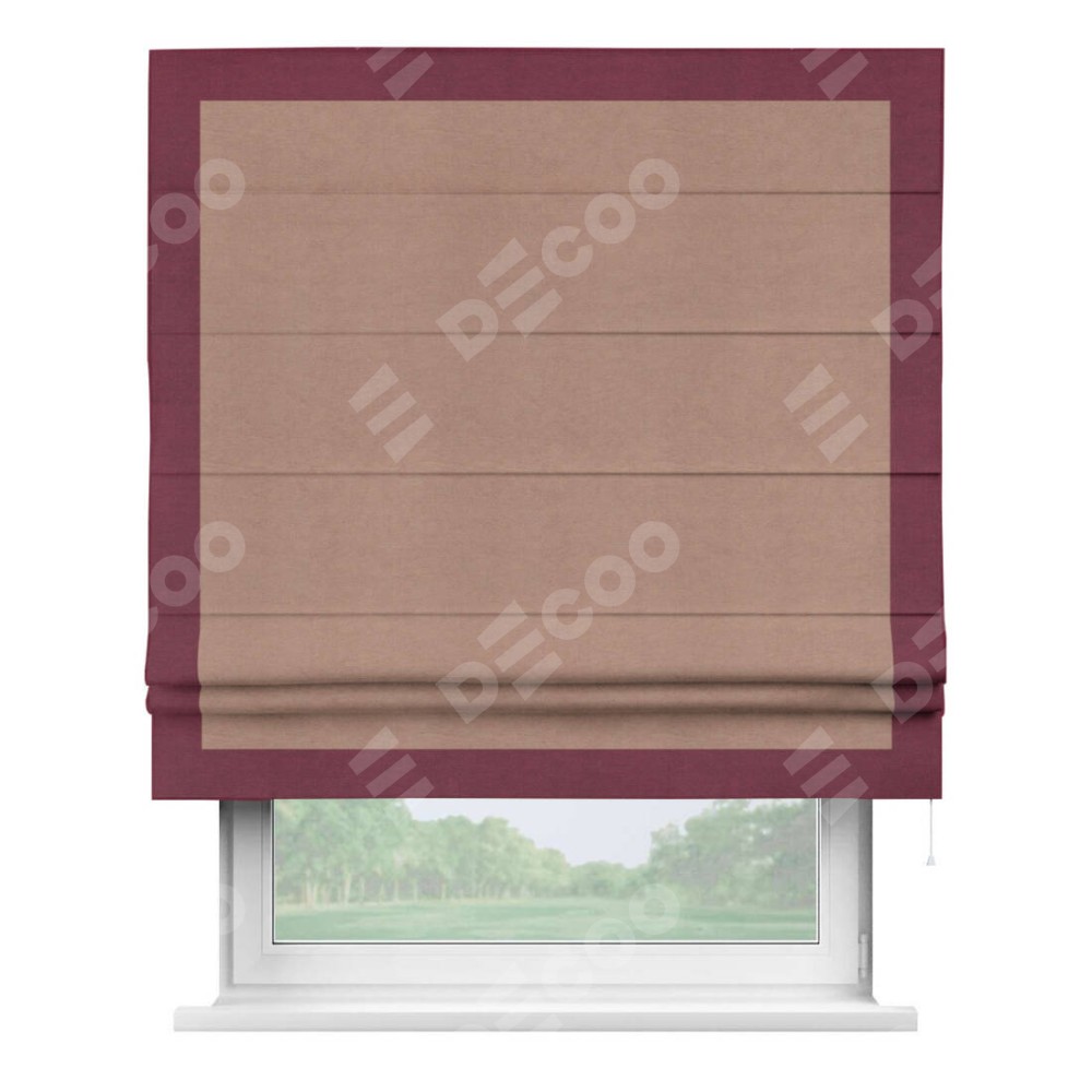 Римская штора «Кортин» с кантом Чесс, для проема, ткань вельвет брусничный джем