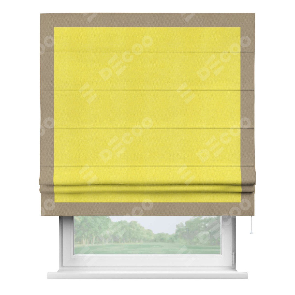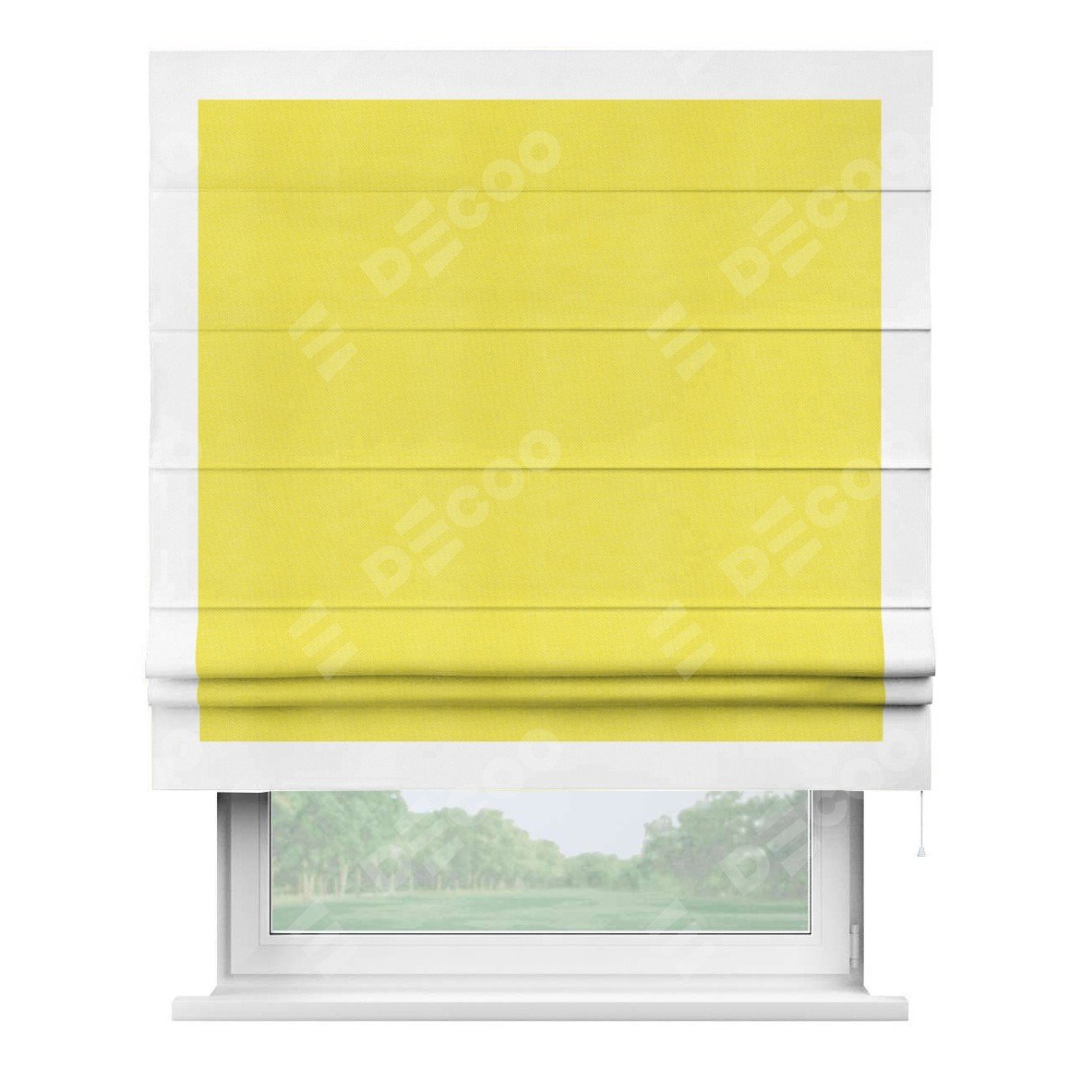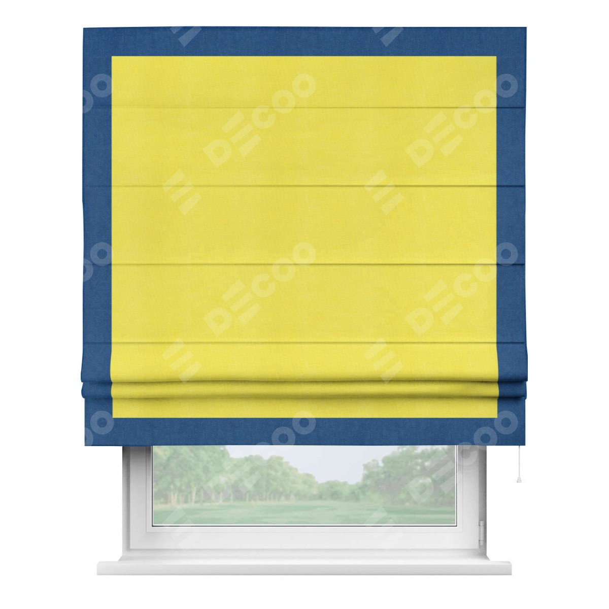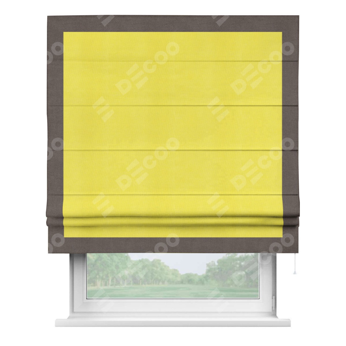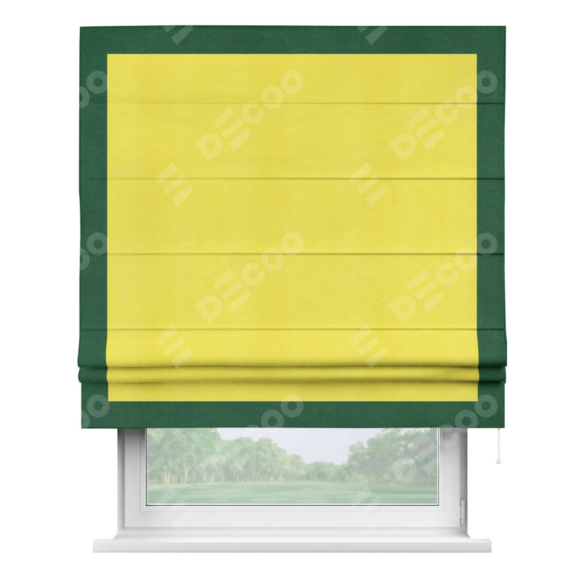 Римская штора производителя «Cortin», используется для проёма, пошита из ткани вельвет cветло-желтый, артикул ткани 30997. Отделка шторы кантом «Чесс», ткань для канта используется из вельвета разной расцветки на выбор. Имеет универсальный механизм и подходит для монтажа: на потолок, на стену и в нишу.