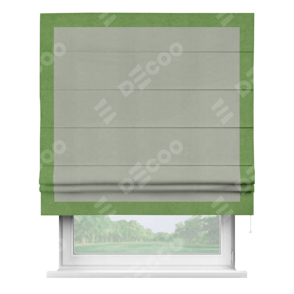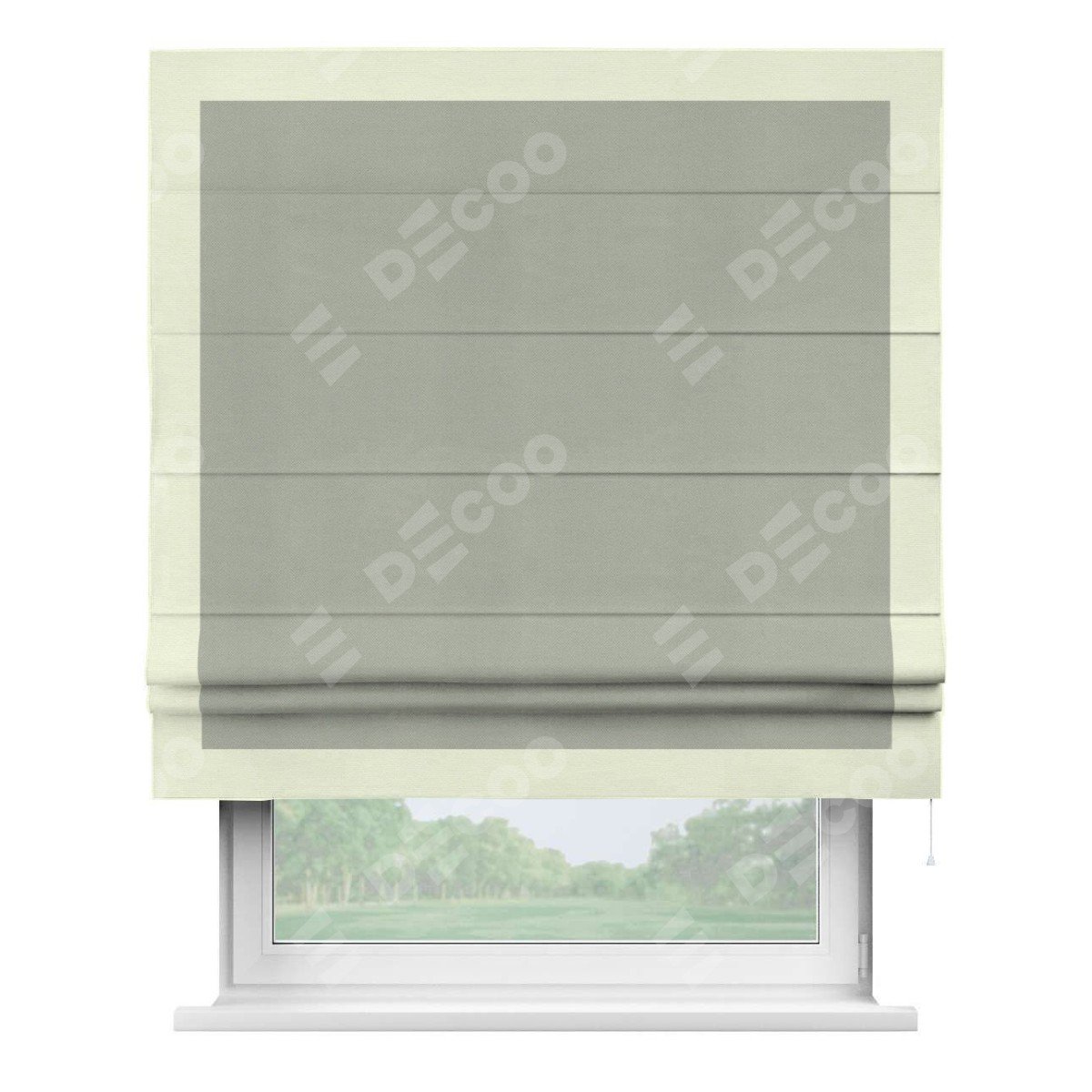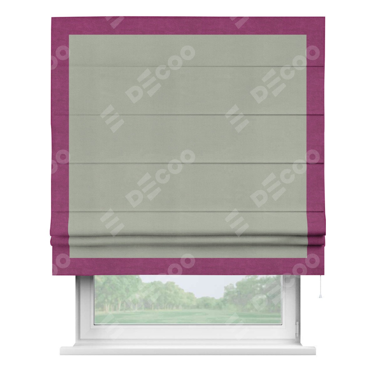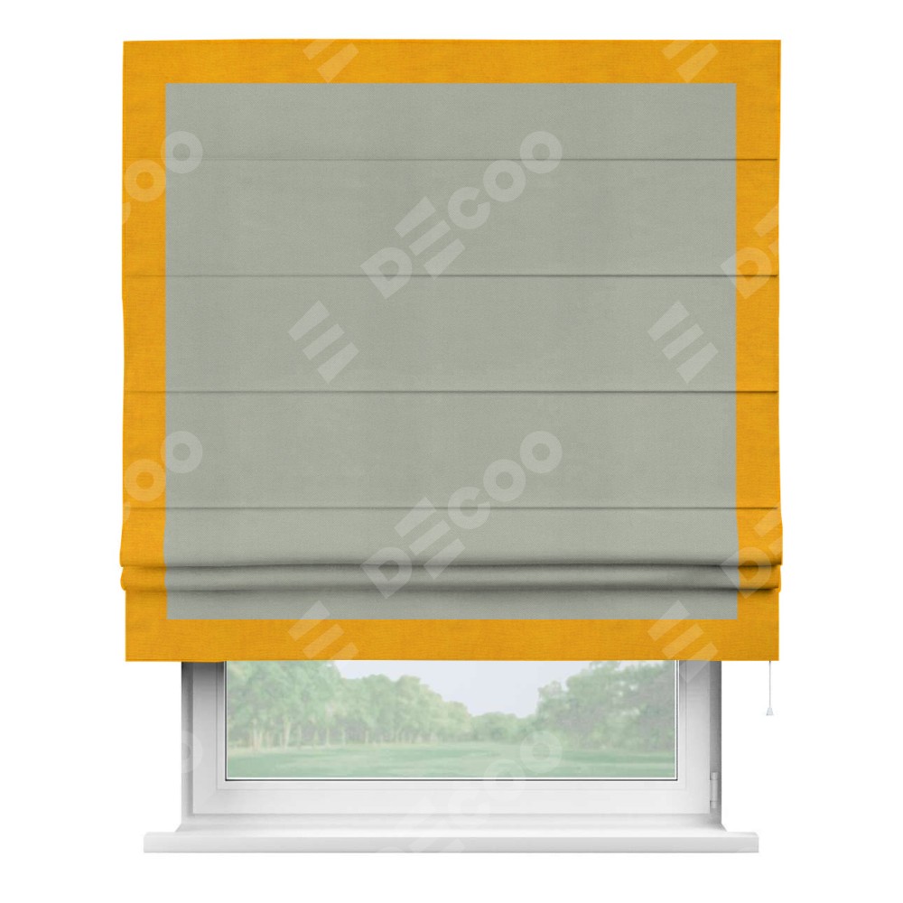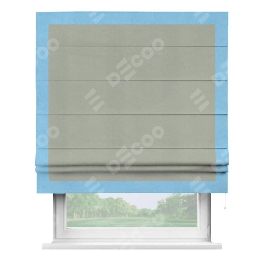Римская штора производителя «Cortin», используется для проёма, пошита из ткани вельвет cветло-серый, артикул ткани 30980. Отделка шторы кантом «Чесс», ткань для канта используется из вельвета разной расцветки на выбор. Имеет универсальный механизм и подходит для монтажа: на потолок, на стену и в нишу.
