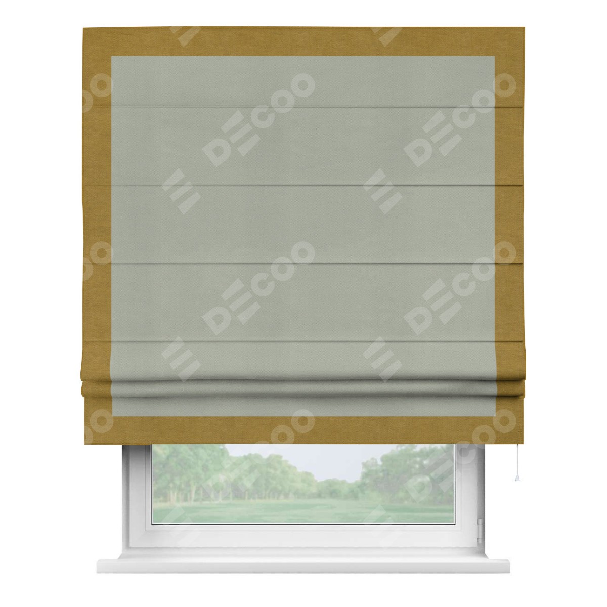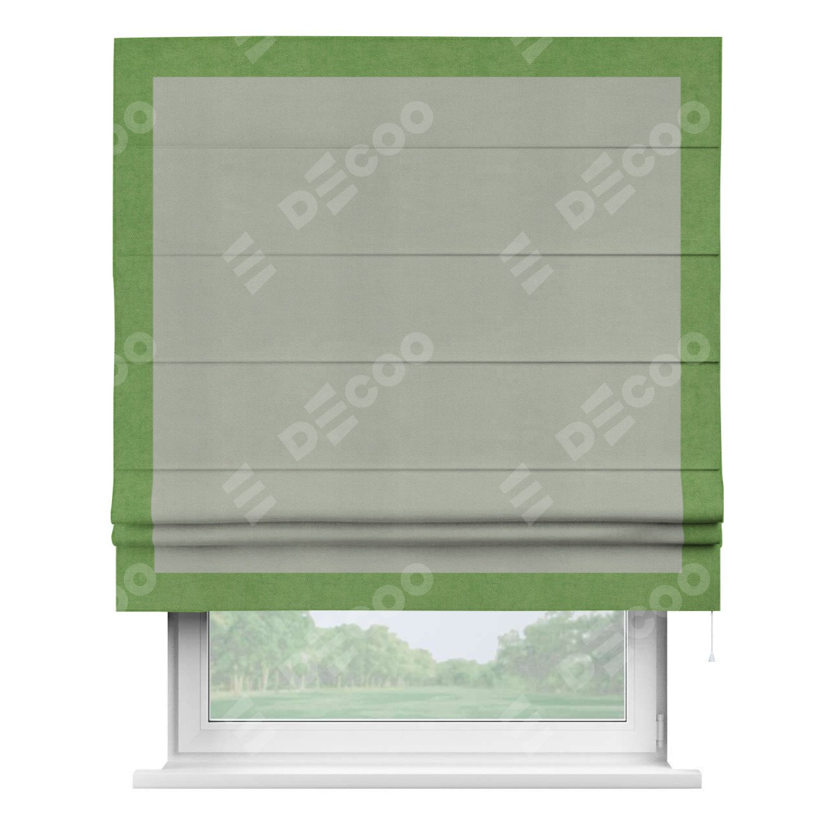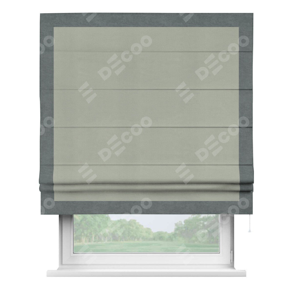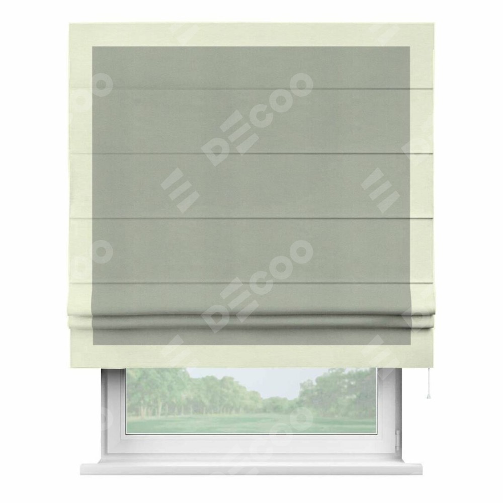 Римская штора производителя «Cortin», используется для проёма, пошита из ткани вельвет cветло-серый, артикул ткани 30980. Отделка шторы кантом «Чесс», ткань для канта используется из вельвета разной расцветки на выбор. Имеет универсальный механизм и подходит для монтажа: на потолок, на стену и в нишу.