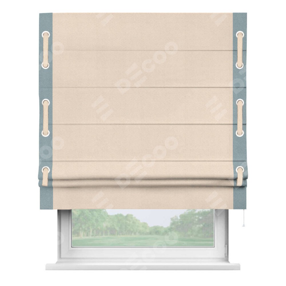 Римская штора «Кортин» с кантом Стрим Дуо (люверсы с пояском), для проема, ткань блэкаут с блеском розовая пудра