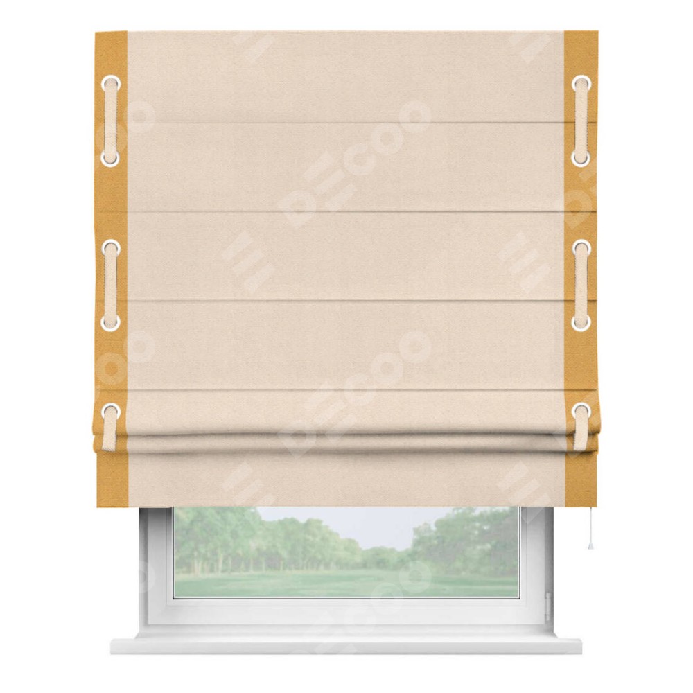 Кант на римских шторах присутствует в виде дизайнерской идеи и может быть пришит по низу, по бокам, по всему периметру и даже посередине полотна. Кант может быть одного цвета с полотном или другого. Также может отличаться фактура ткани канта.