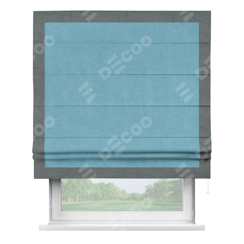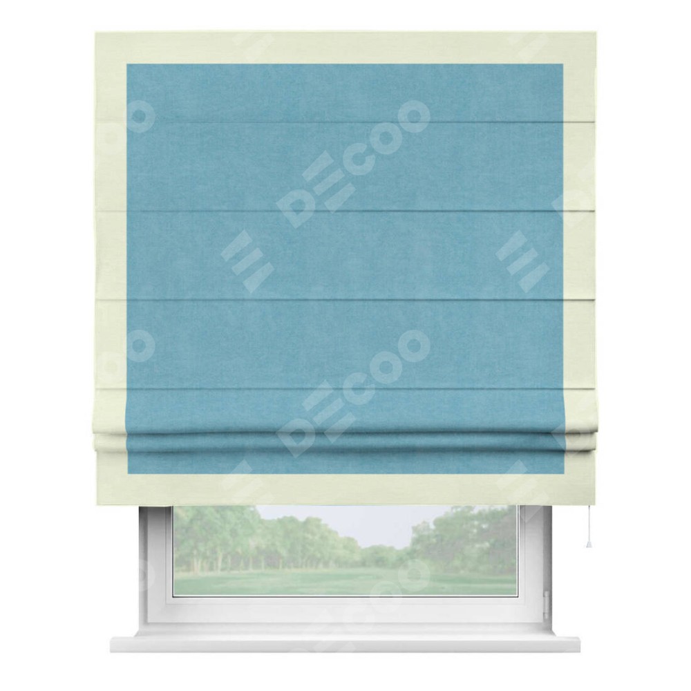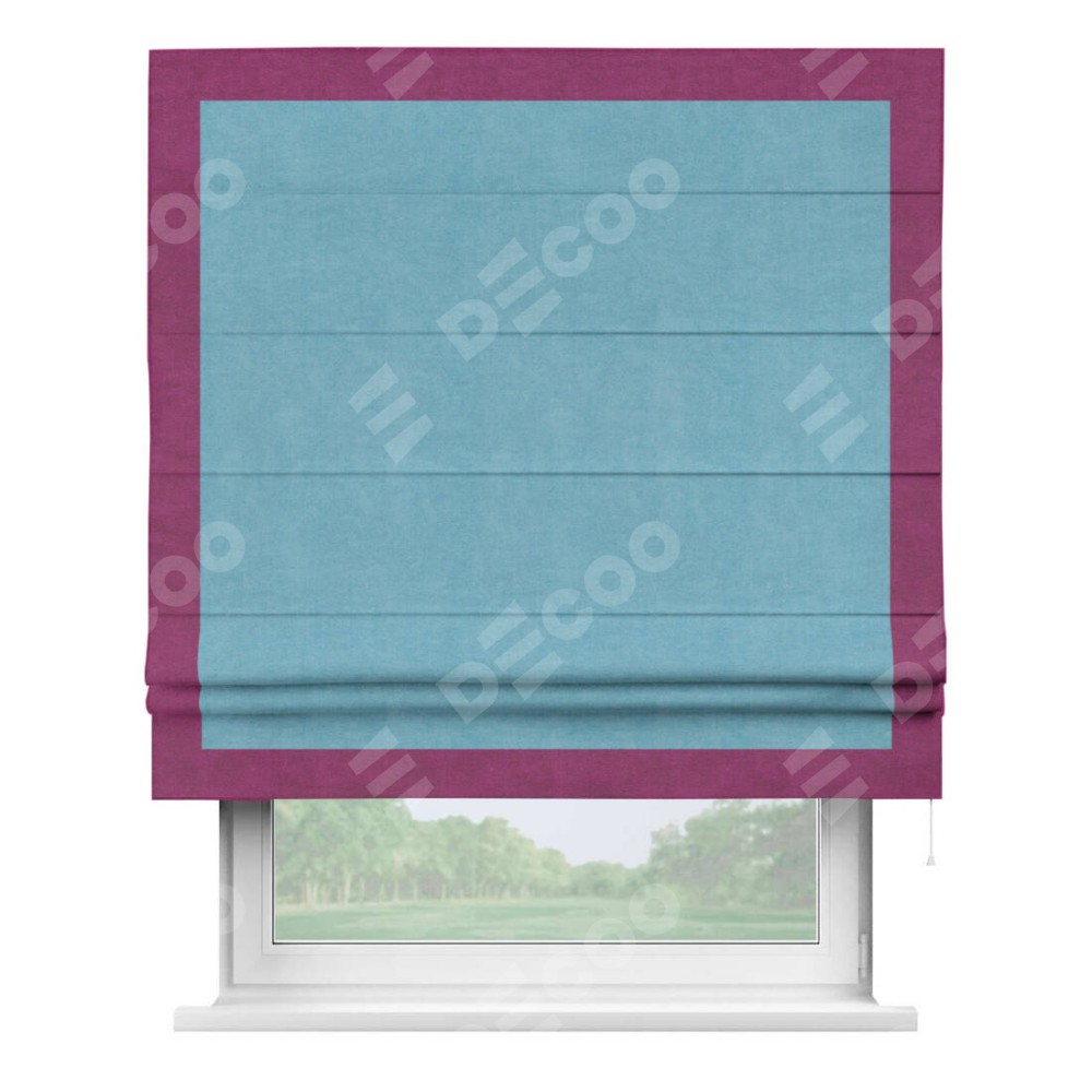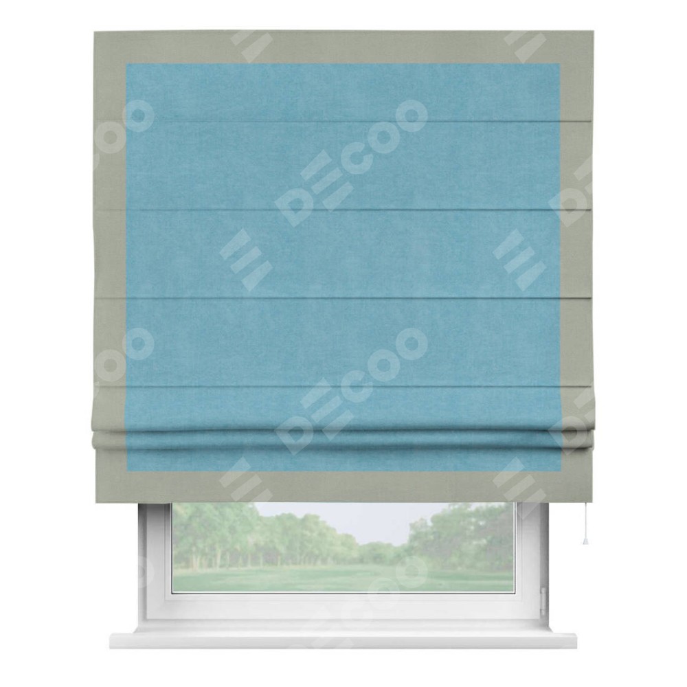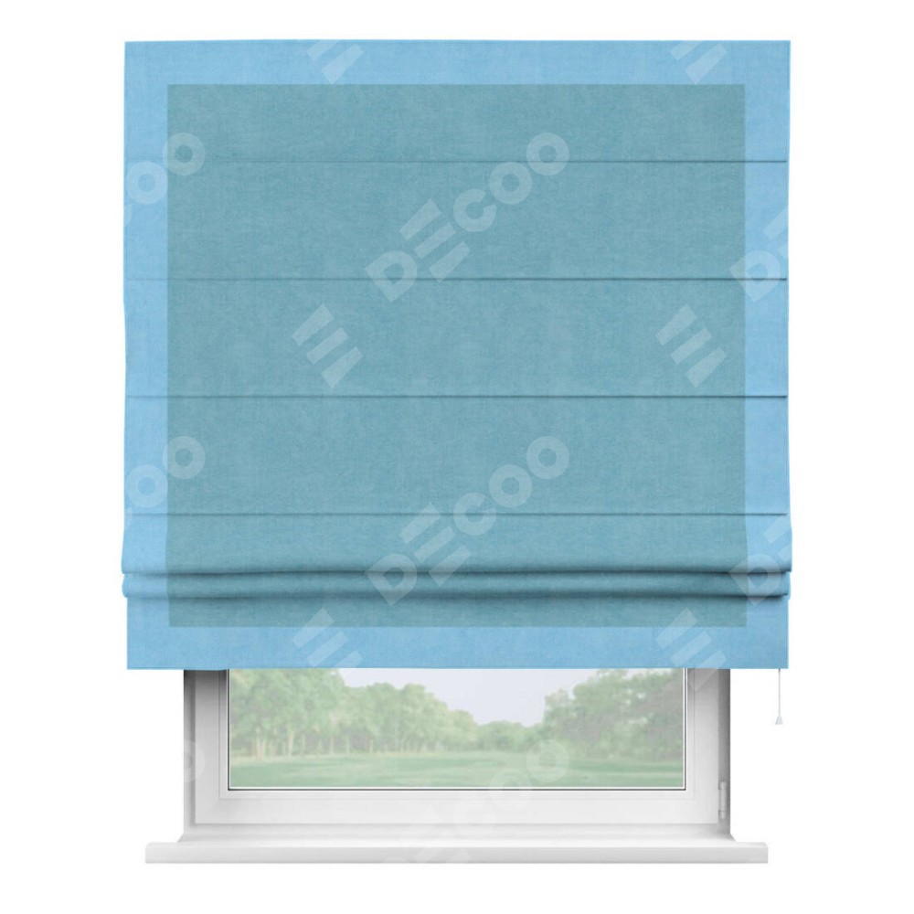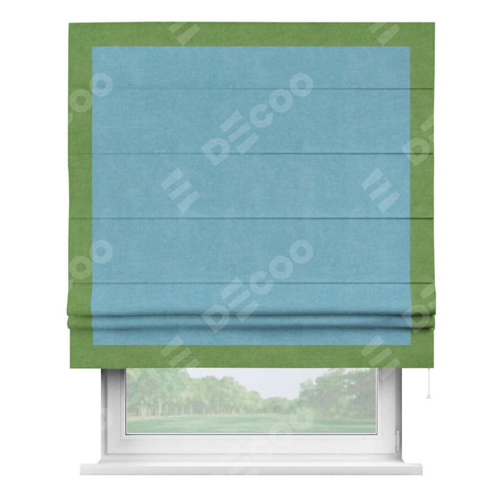 Римская штора «Кортин» с кантом Чесс, для проема, ткань вельвет ментоловый