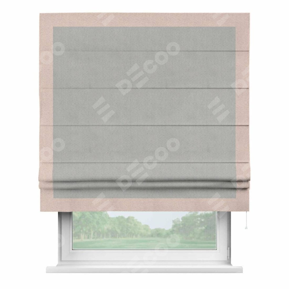 Римская штора производителя «Cortin», используется для проёма, пошита из ткани блэкаут с блеском сиреневый, артикул 34649. Отделка шторы кантом «Чесс», ткань для канта используется из блэкаута с блеском разной расцветки на выбор. Изнаночная сторона материала черного цвета, что обеспечивает необходимую светонепроницаемость. Имеет универсальный механизм и подходит для монтажа: на потолок, на стену и в нишу.