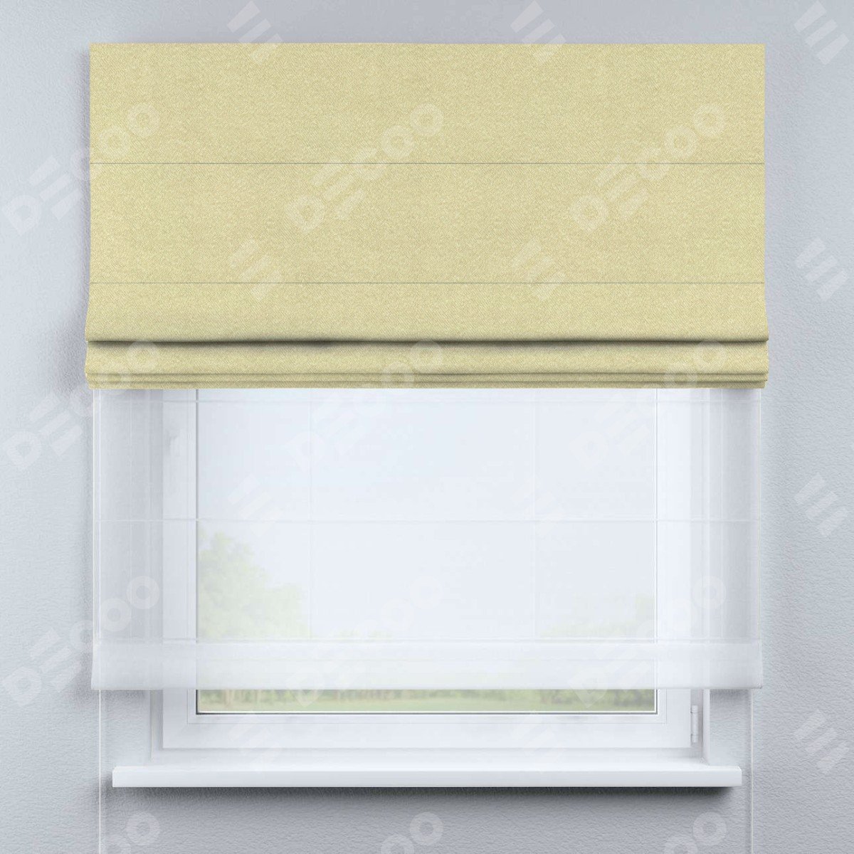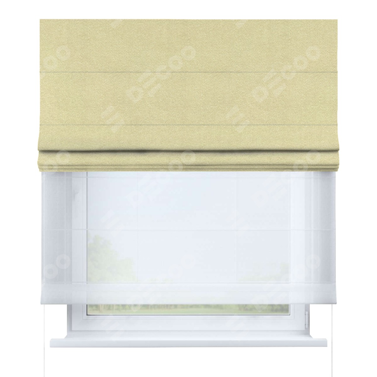 Римская штора день-ночь производителя «Cortin», используется для проёма, пошита из двух полотен, с лицевой стороны софт однотонный молочный артикул 11938, вторая ткань тюль (по стандарту комплектуется тюль белого цвета артикул V-01). Имеет универсальный механизм и подходит для монтажа: на потолок, на стену и в нишу.