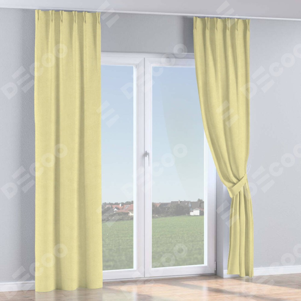 Комплект прямых штор, от производителя «Cortin», пошиты из ткани софт однотонный молочный, артикул ткани 11938. С изнаночной стороны в верхней части штор пристрачивается шторная лента с декоративными складками «Кустик». Для создания элегантных складок прямые шторы шьются по стандарту с коэффициентом 1:2 (на 100 см. ширины проёма 200 см. ширины ткани).