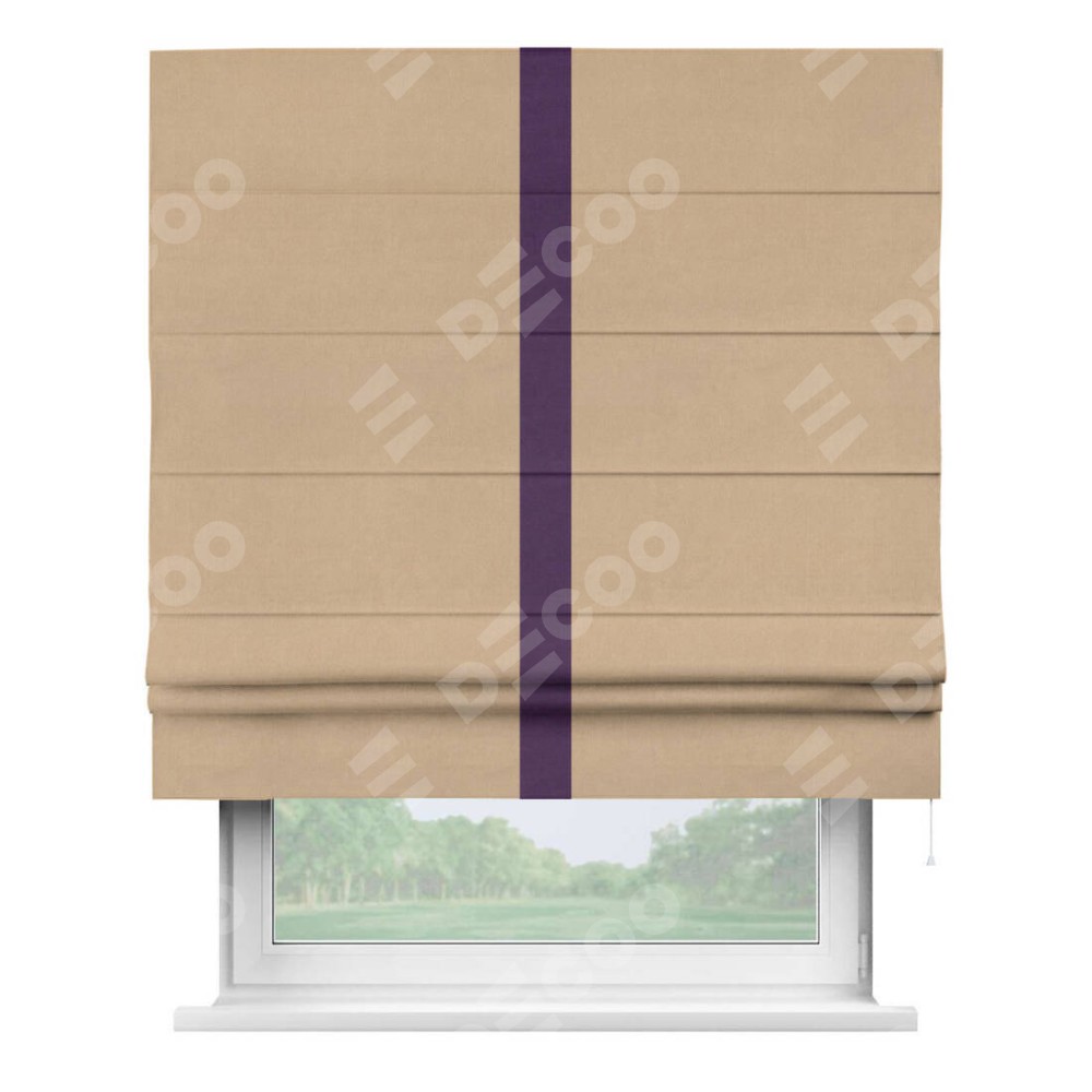 Римская штора «Кортин» с кантом Хайвэй, для проема, ткань вельвет песочный