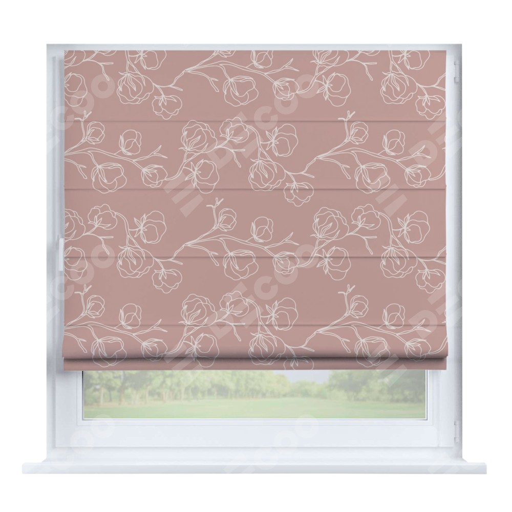 Римская штора производителя «Cortin», устанавливается на створку окна, пошита из ткани блэкаут с нанесением сублимационной печати «Нежные цветы». Штора шьётся по индивидуальным размерам, для данного типа римской шторы возможная ширина от 35 до 150 см., высота до 250 см.