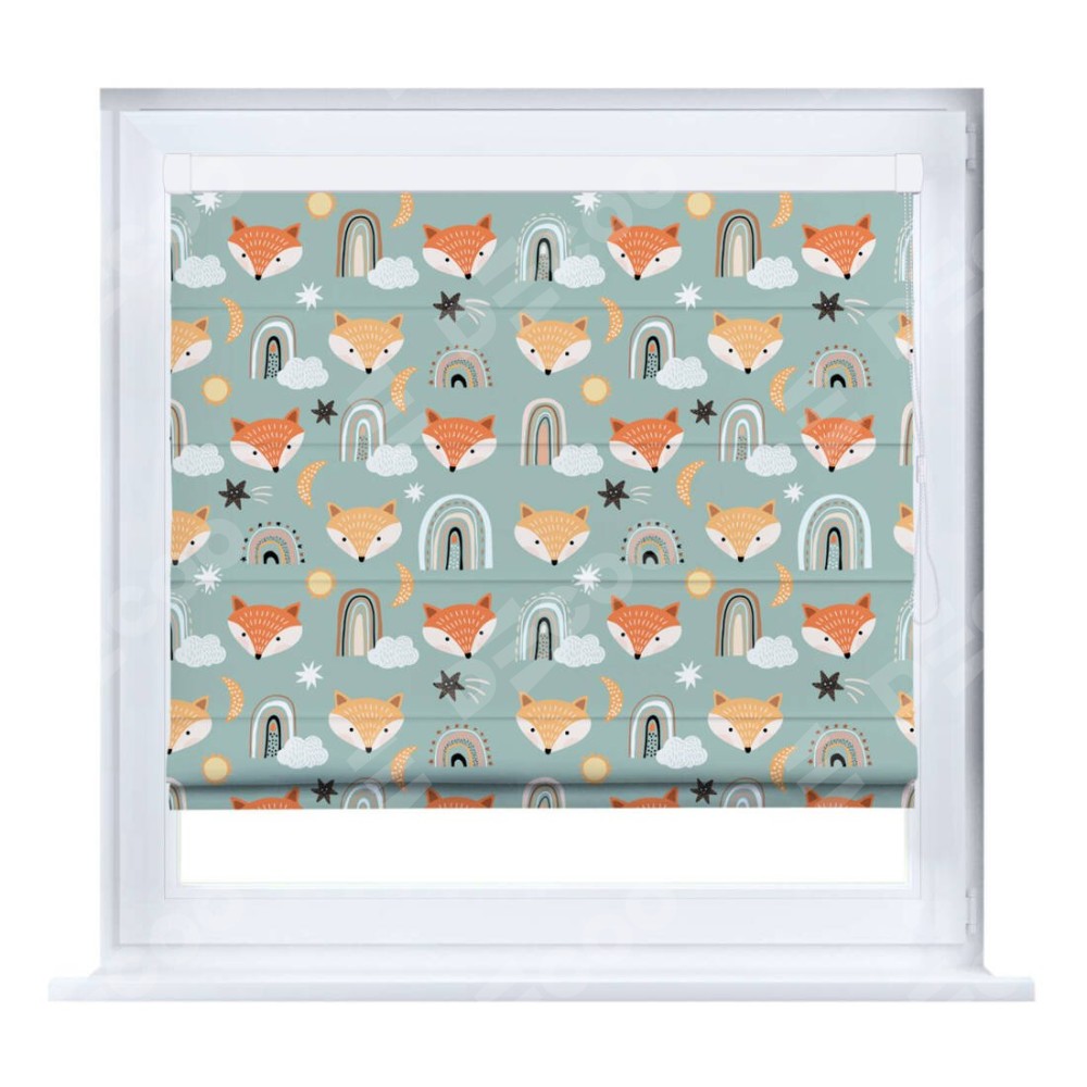 Римская штора производителя «Cortin», устанавливается на створку окна, пошита из ткани блэкаут с нанесением сублимационной печати «Озорные лисички». Штора шьётся по индивидуальным размерам, для данного типа римской шторы возможная ширина от 35 до 150 см., высота до 250 см.