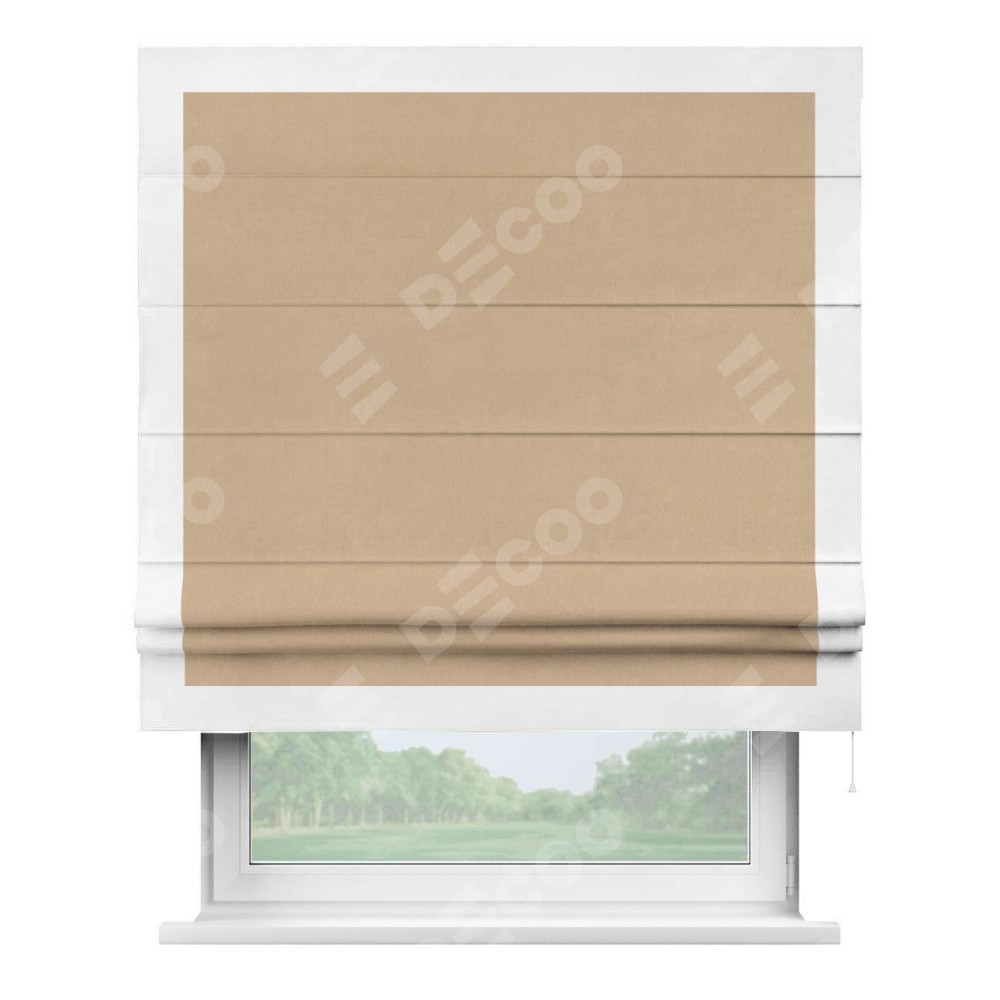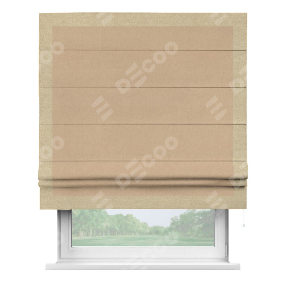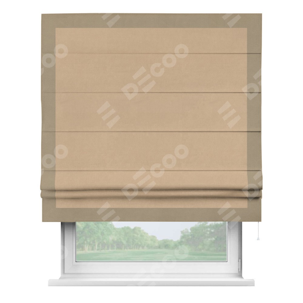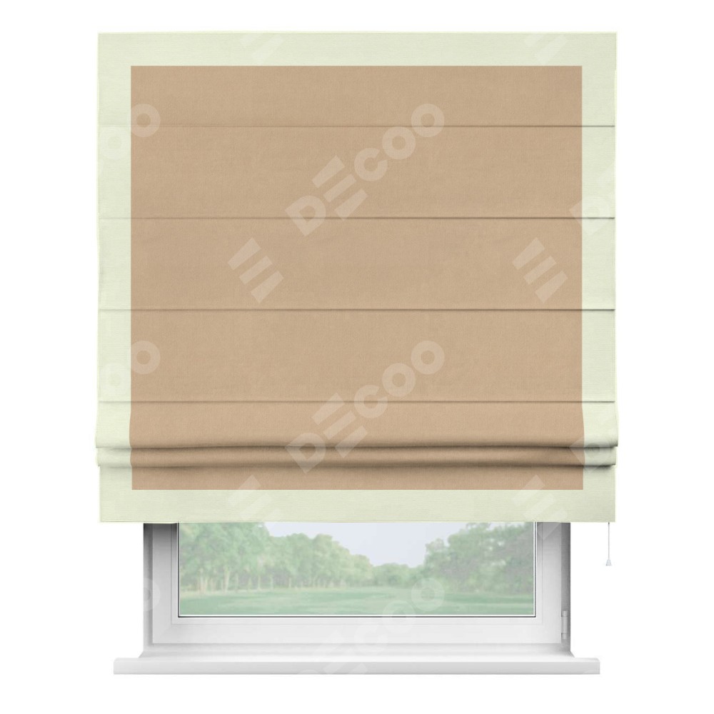 Римская штора «Кортин» с кантом Чесс, для проема, ткань вельвет песочный