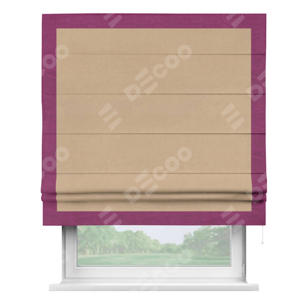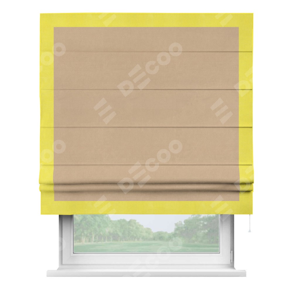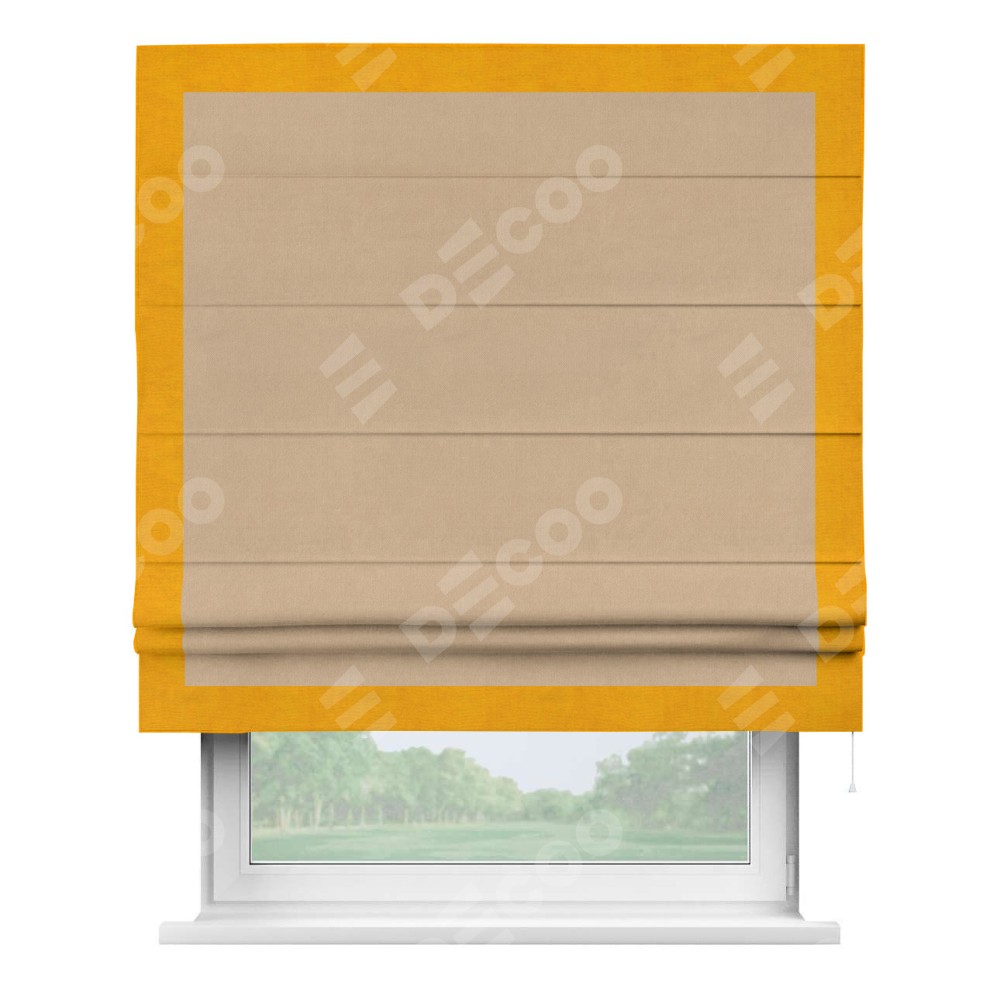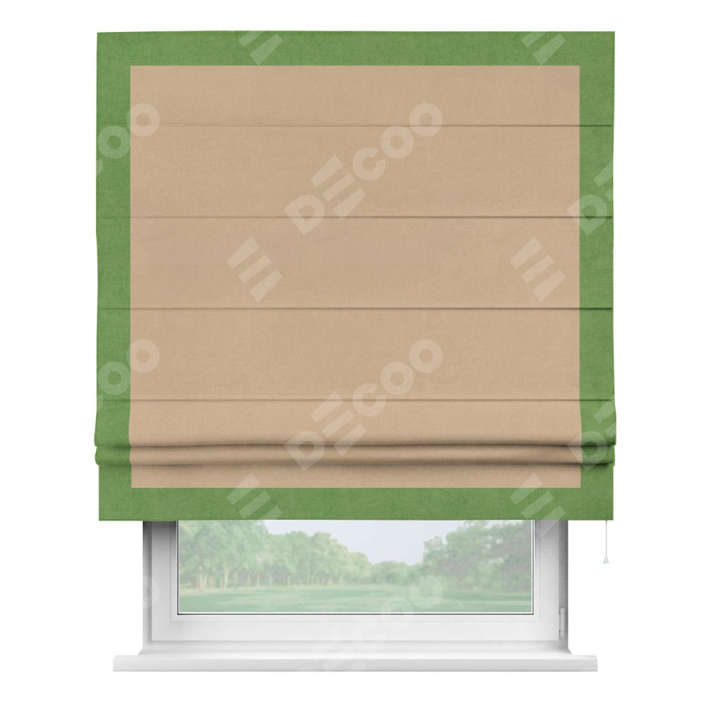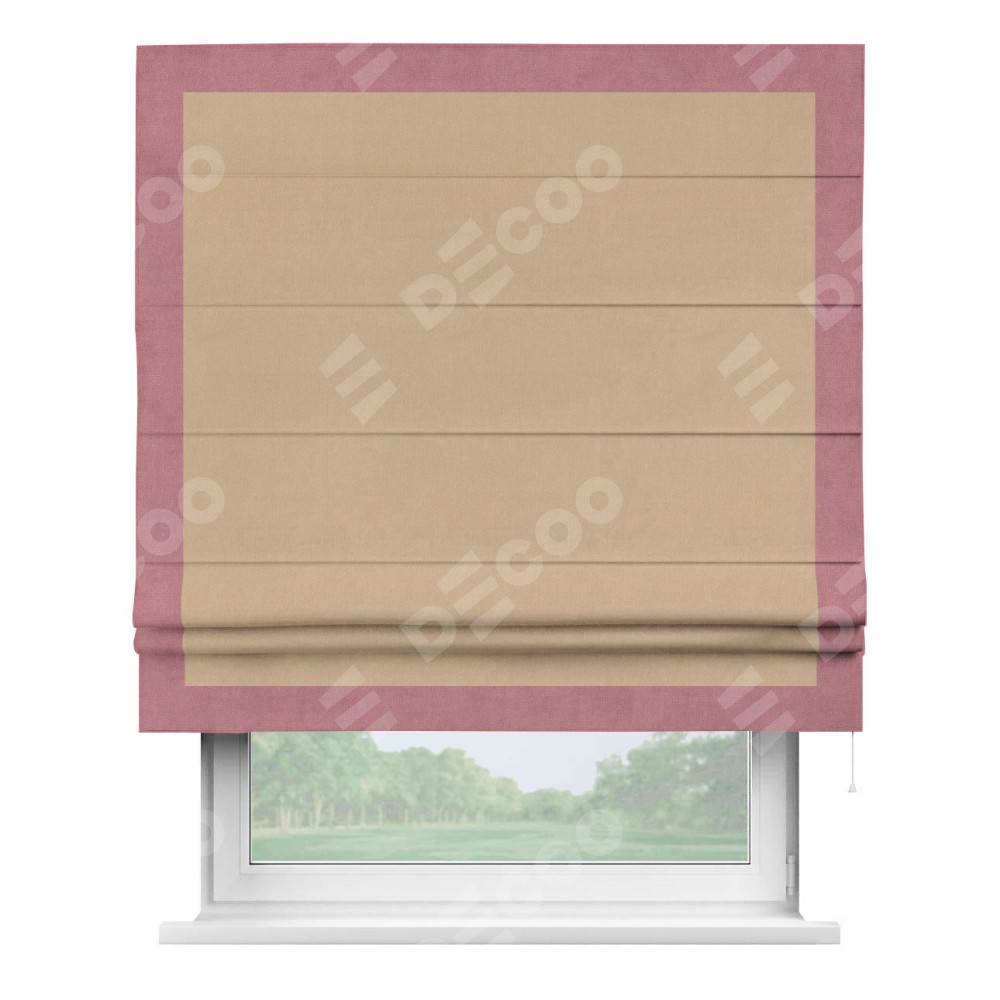 Римская штора «Кортин» с кантом Чесс, для проема, ткань вельвет песочный