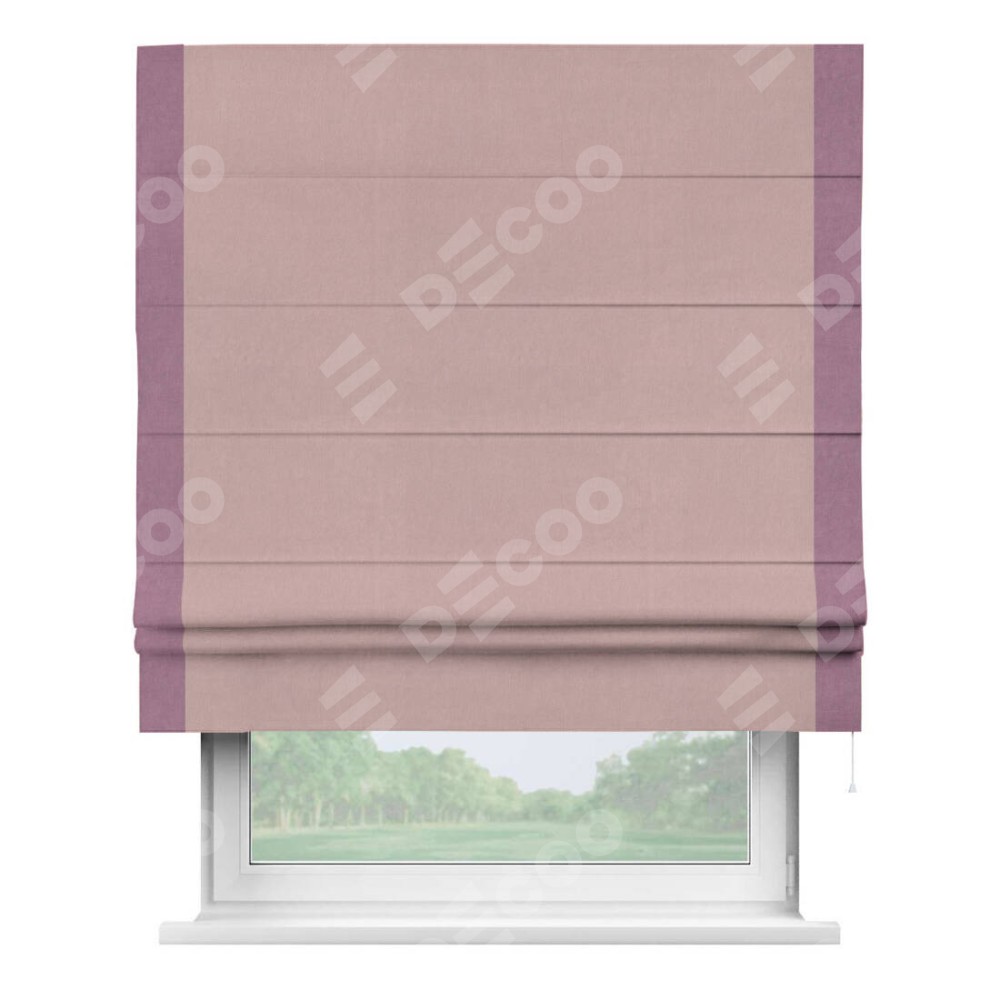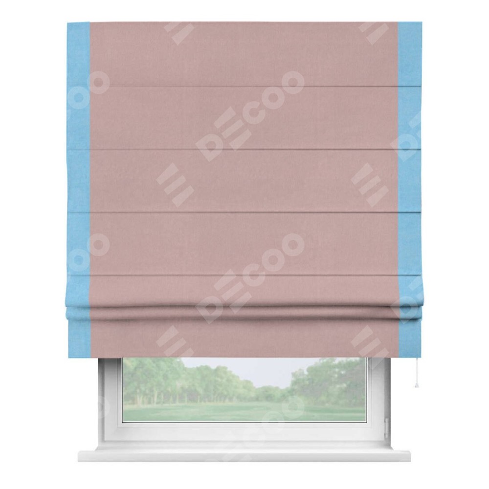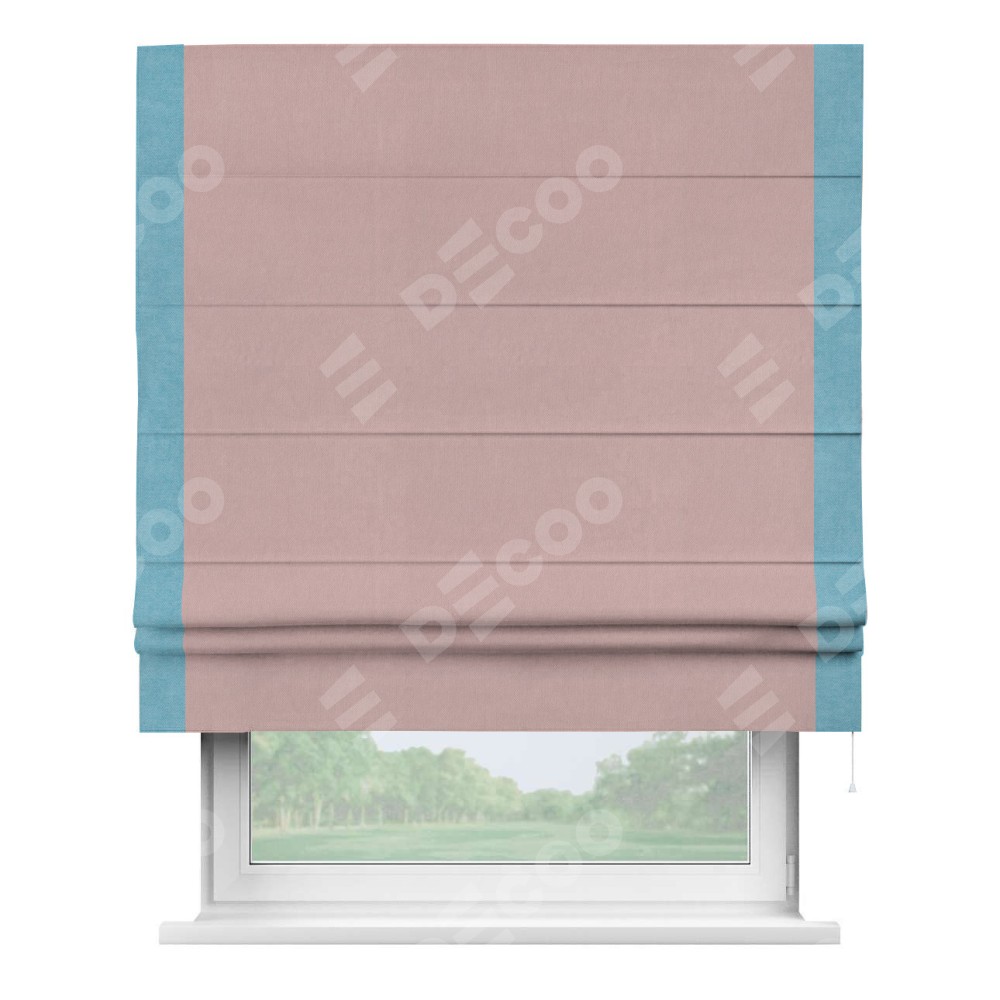 Римская штора «Кортин» с кантом Стрим Дуо, для проема, ткань вельвет розовая пудра