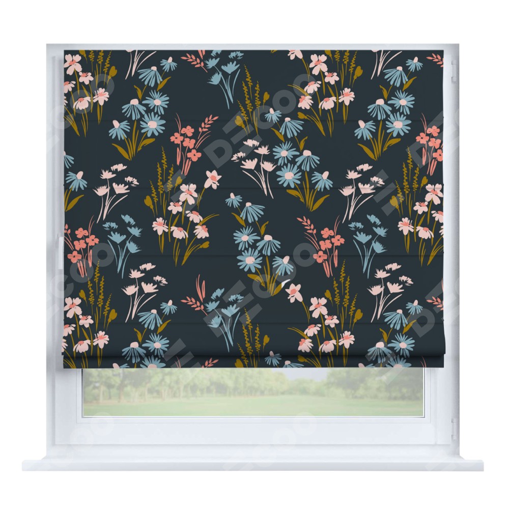 Римская штора производителя «Cortin», устанавливается на створку окна, пошита из ткани блэкаут с нанесением сублимационной печати «Чарующие цветы». Штора шьётся по индивидуальным размерам, для данного типа римской шторы возможная ширина от 35 до 150 см., высота до 250 см.
