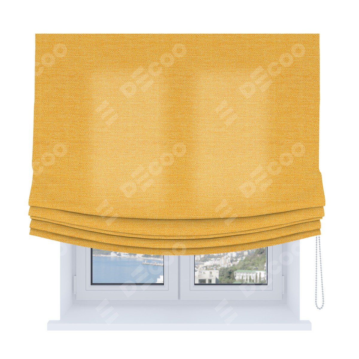 Римская штора Soft производителя «Cortin», используется для проёма, пошита из ткани лён желтый, артикул ткани 63738. Имеет универсальный механизм и подходит для монтажа: на потолок, на стену и в нишу. В отличие от стандартных римских штор, римская штора Soft не имеет горизонтальных вставок и нижнего отвеса. Это позволяет ткани произвольно драпироваться в свободные мягкие складки.