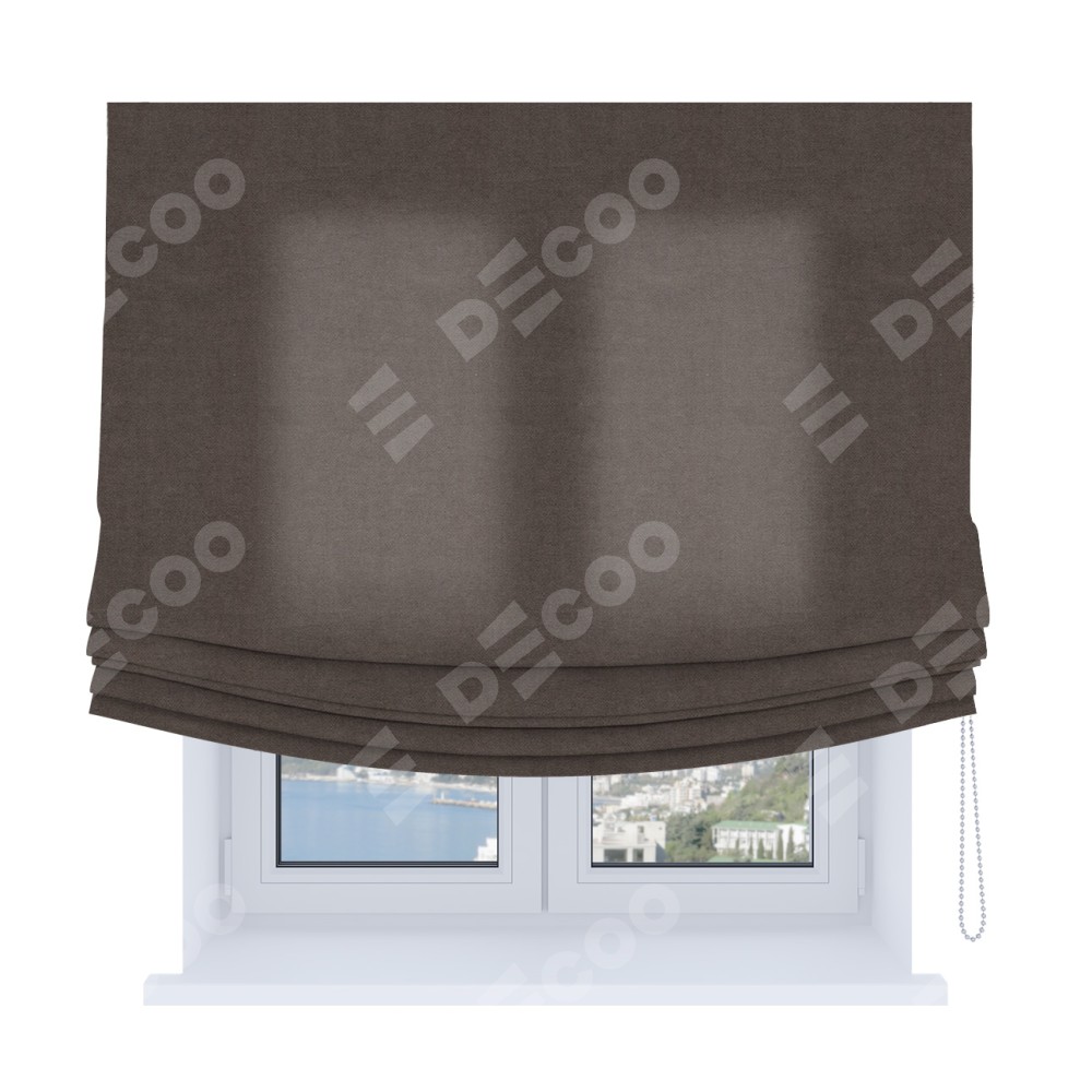 Римская штора Soft производителя «Cortin», используется для проёма, пошита из ткани вельвет коричневый, артикул ткани 14135. Имеет универсальный механизм и подходит для монтажа: на потолок, на стену и в нишу. В отличие от стандартных римских штор, римская штора Soft не имеет горизонтальных вставок и нижнего отвеса. Это позволяет ткани произвольно драпироваться в свободные мягкие складки.