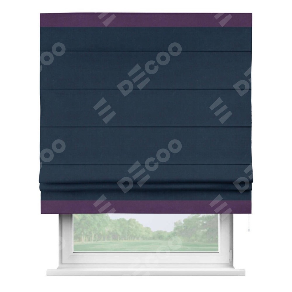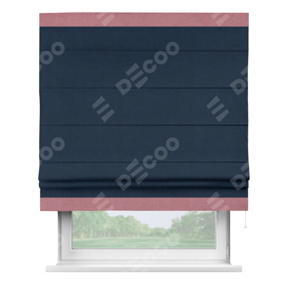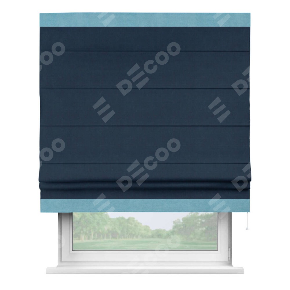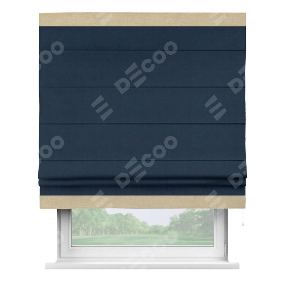Римская штора «Кортин» с кантом Горизонт, для проема, ткань вельвет темно-синий