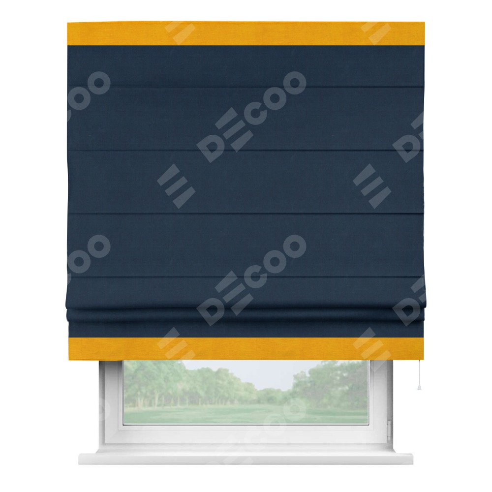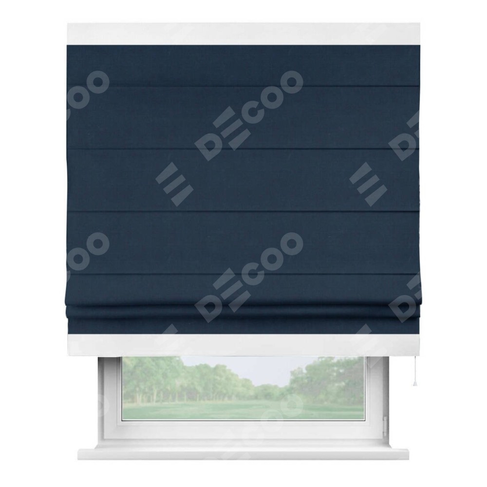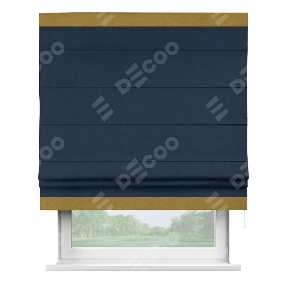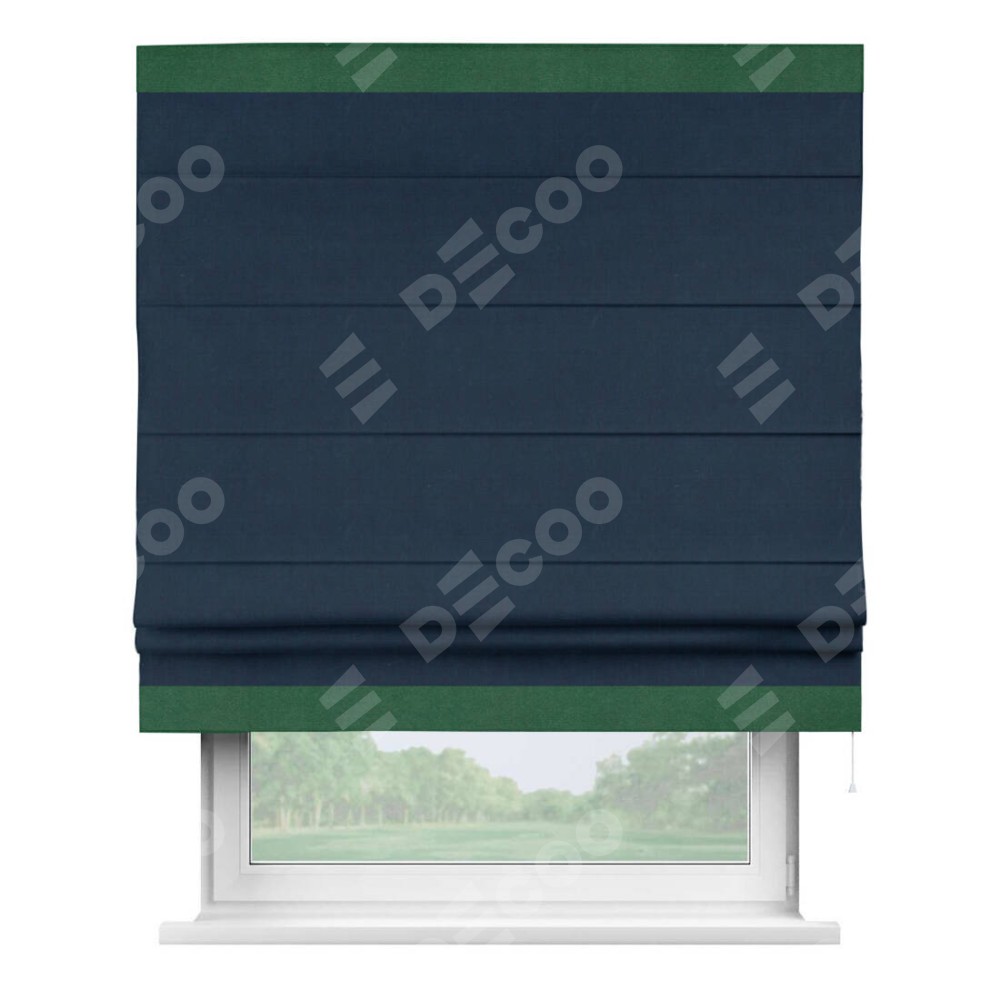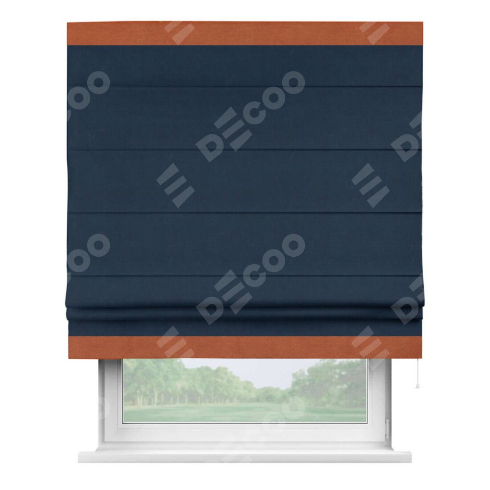 Римская штора «Кортин» с кантом Горизонт, для проема, ткань вельвет темно-синий