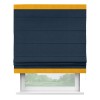Римская штора производителя «Cortin», используется для проёма, пошита из ткани вельвет темно-синий, артикул ткани 14152. Отделка шторы кантом «Горизонт», ткань для канта используется из вельвета разной расцветки на выбор. Имеет универсальный механизм и подходит для монтажа: на потолок, на стену и в нишу.