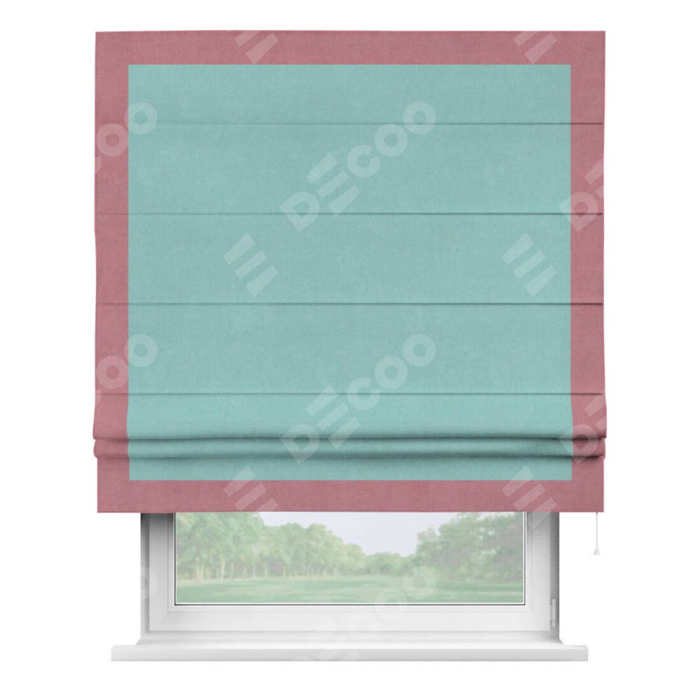 Римская штора «Кортин» с кантом Чесс, для проема, ткань вельвет тиффани