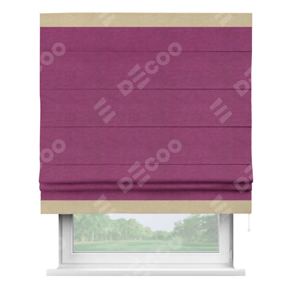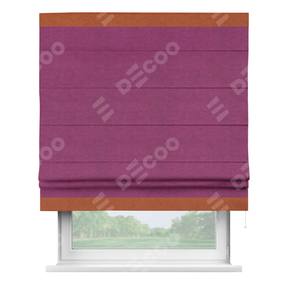 Римская штора «Кортин» с кантом Горизонт, для проема, ткань вельвет фиолетовый