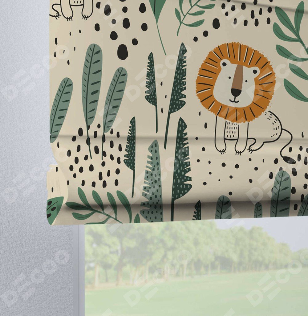 Римская штора «Кортин» на петлях «Лев из джунглей»