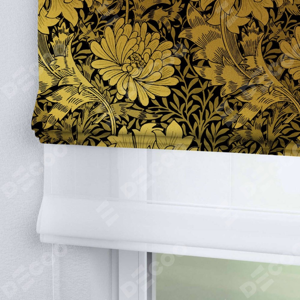 Римская штора день-ночь производителя «Cortin», используется для проёма, пошита из двух полотен, с лицевой блэкаут с нанесением сублимационной печати «Ремикс морриса», вторая ткань тюль (по стандарту комплектуется тюль белого цвета артикул V-01). Имеет универсальный механизм и подходит для монтажа: на потолок, на стену и в нишу.