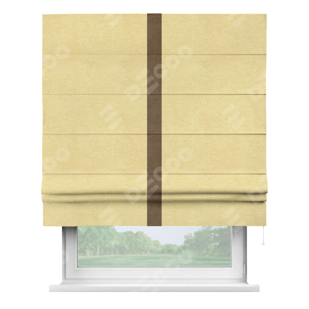 Римская штора «Кортин» с кантом Хайвэй, для проема, ткань софт однотонный золотой
