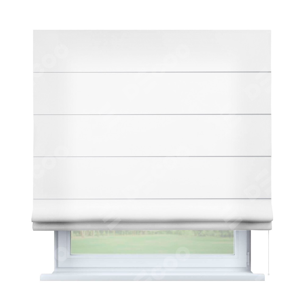Римская штора производителя «Cortin», используется для проёма, пошита из ткани однотонная белоснежная, артикул ткани 41217. Имеет универсальный механизм и подходит для монтажа: на потолок, на стену и в нишу.